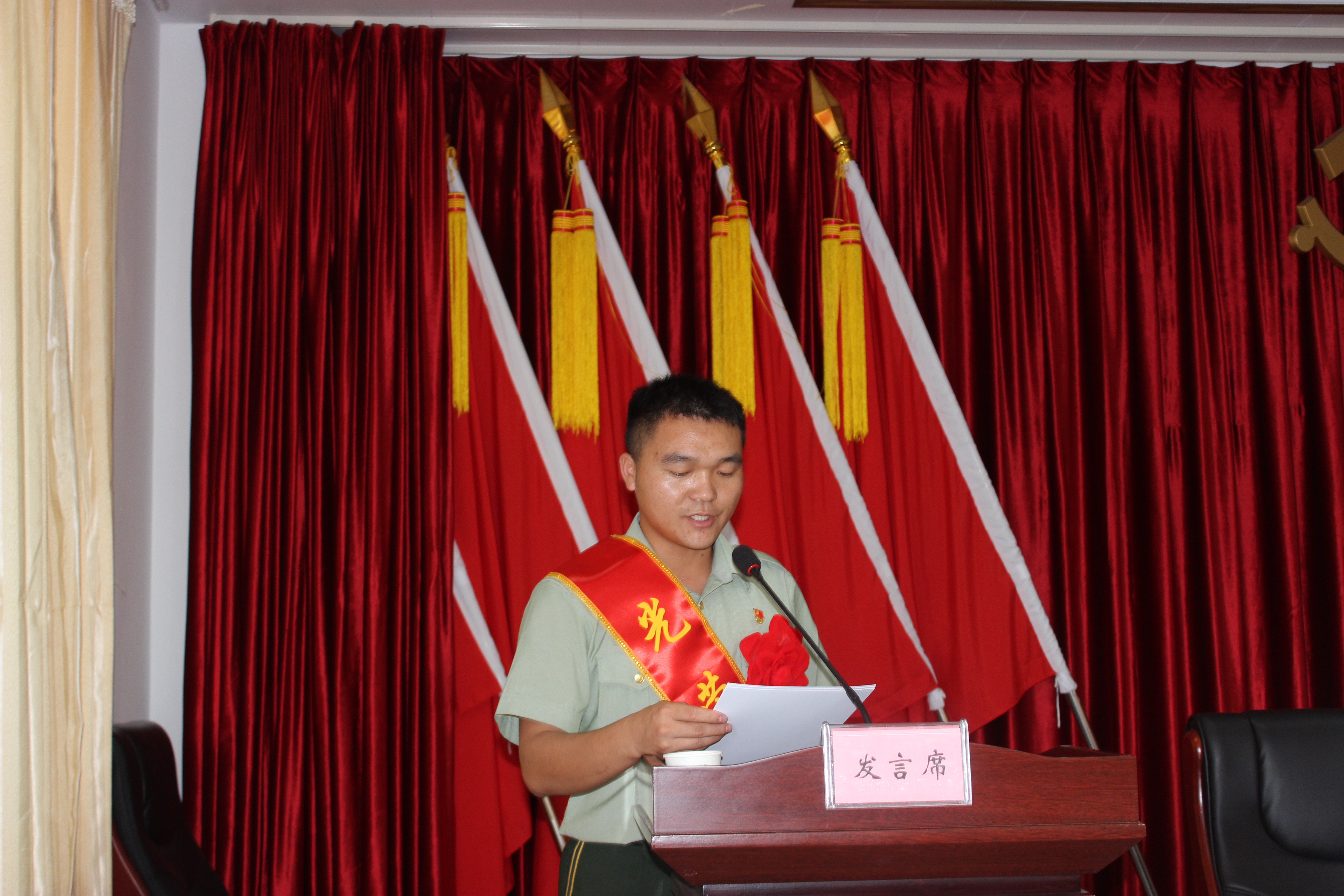 退役军人代表陈某在发言中表示:将不负重托,退役回来后一定听党话、跟党走,永葆军人本色,为家乡发展再立新功勋。