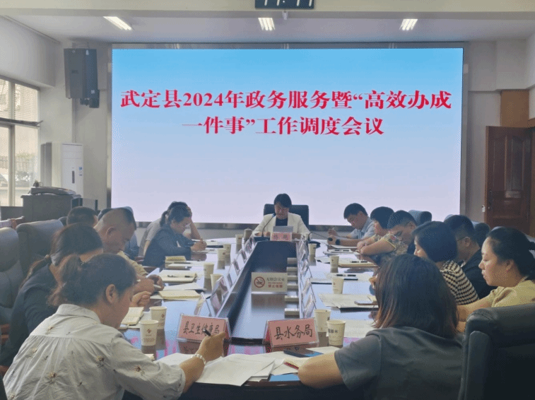 近日,武定县组织召开2024年全县政务服务暨“高效办成一件事”工作调度会。县人民政府副县长杨艳、县级政务服务实施部门分管领导参加会议。