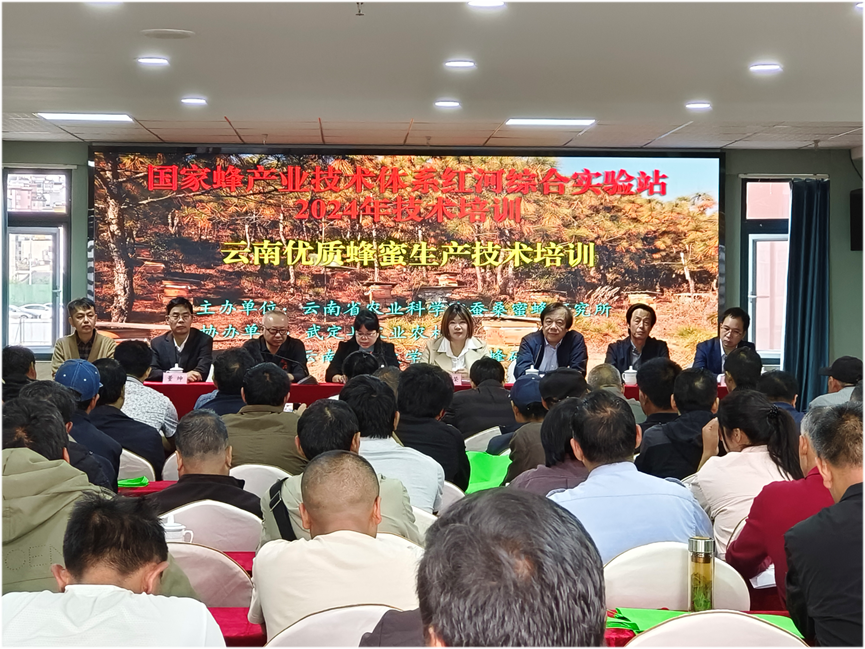 为推进国家乡村振兴重点帮扶县干部人才“组团式”帮扶工作,充分发挥国家蜂产业技术体系对区域产业发展的科技支撑,推动云南蜂蜜生产高质量发展,保障蜂农增产增收,助力乡村振兴。10月12日至14日,国家蜂产业技术体系红河综合试验站在云南省武定县举办2024年云南优质蜂蜜生产技术培训。特邀请国家蜂产业技术体系岗位科学家浙江大学胡福良、郑火青教授,安徽农业大学余林生教授、云南农业大学董坤教授和云南省农业农村厅畜牧工作总站尤方东高级畜牧师等专家莅临指导并授课。