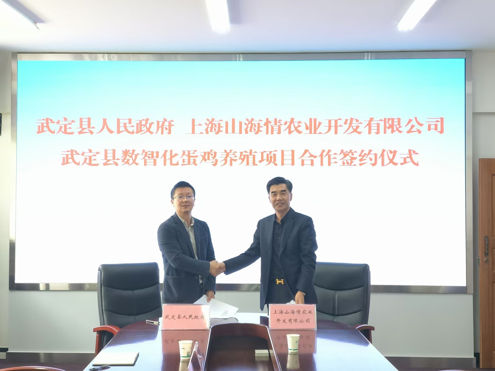 2024年10月28日,武定县人民政府与上海山海情农业开发有限公司合作的“武定县数智化蛋鸡养殖项目”签约仪式在武定县举行。武定县委常委、县人民政府副县长朱江和上海山海情农业开发有限公司总经理王泽勇共同出席签约仪式。此次签约的武定县智能化蛋鸡养殖项目,将为双方发展注入崭新机遇与强劲动力。