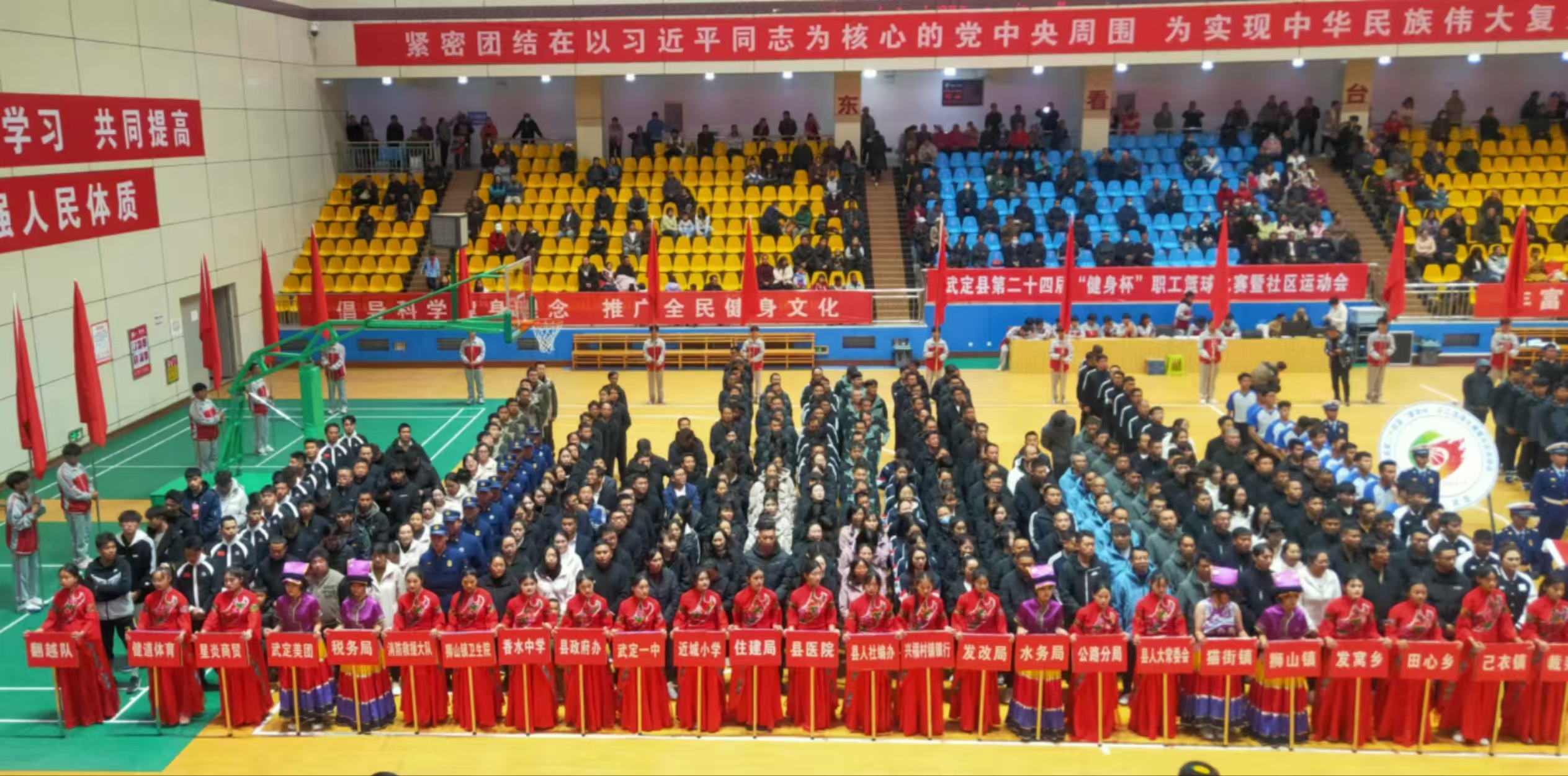 12月3日,武定县第二十四届“健身杯”职工篮球比赛暨社区运动会在县体育馆隆重开幕,狮山镇卫生院代表队参加了开幕式。