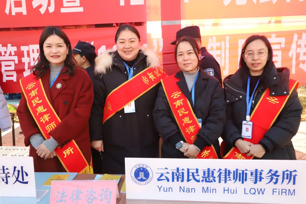 云南民惠律师事务所5名执业律师都是女性,在武定被称为“律政佳人”所,其律师也是武定县136个村(居)委会“法务通”法律服务机器人后台值班律师。在第十一个国家宪法日,第七个“宪法宣传周”期间,武定县组织了“尊法守法·携手筑梦”公益法律服务活动,云南民惠律师事务所律师主动参与。“律政佳人”身着绶带齐上阵,她们有的发放普法资料,有的与群众进行互动,有的在为群众积极提供免费咨询,“律政俏佳人”成为国家宪法日一道靓丽的风景。近年来,律师公益法律服务意识不断增强,覆盖面不断扩大,他们将低收入群体、残疾人、农民工等特殊群体作为公益法律服务的重点对象,积极到少数民族地区提供志愿服务,为特殊群体解决了不少法律问题。“让公益法律服务这项惠民生、暖民心的工作惠及更多群众,让法治阳光温暖更多人”。民惠律师事务所主任李汉梅律师表示。