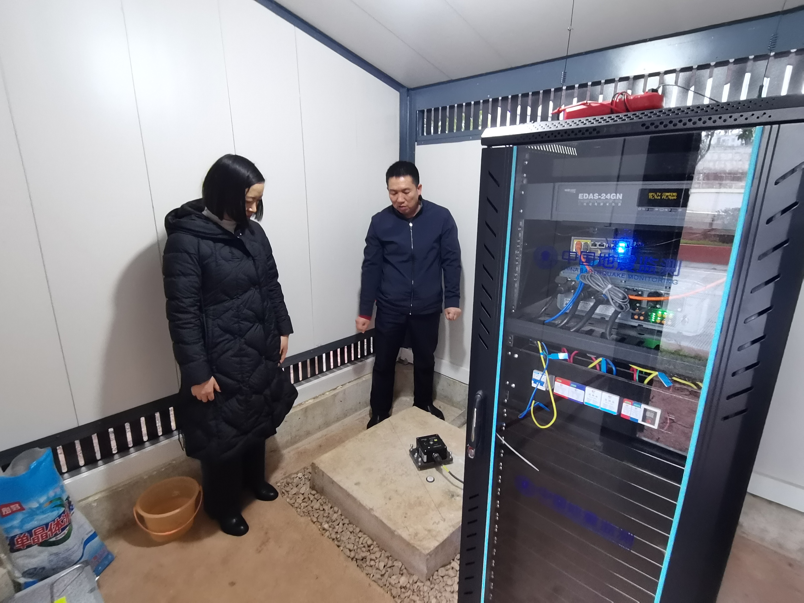 本次检查维护工作由县地震局张晓玉副局长带队,对武定民族中学强震台进行了全面细致的检查。首先,认真检查了预警监测仪器设备的运行情况,包括加速度计、数据采集器等关键部件,确保设备处于良好工作状态。同时,对各项设备的安全性能进行了严格检测,排查了可能存在的安全隐患。在检查过程中,还对台站的室内外观测环境进行了整理,清理了台站周边的杂物,擦除台站设备上的灰尘确保了观测环境的整洁。