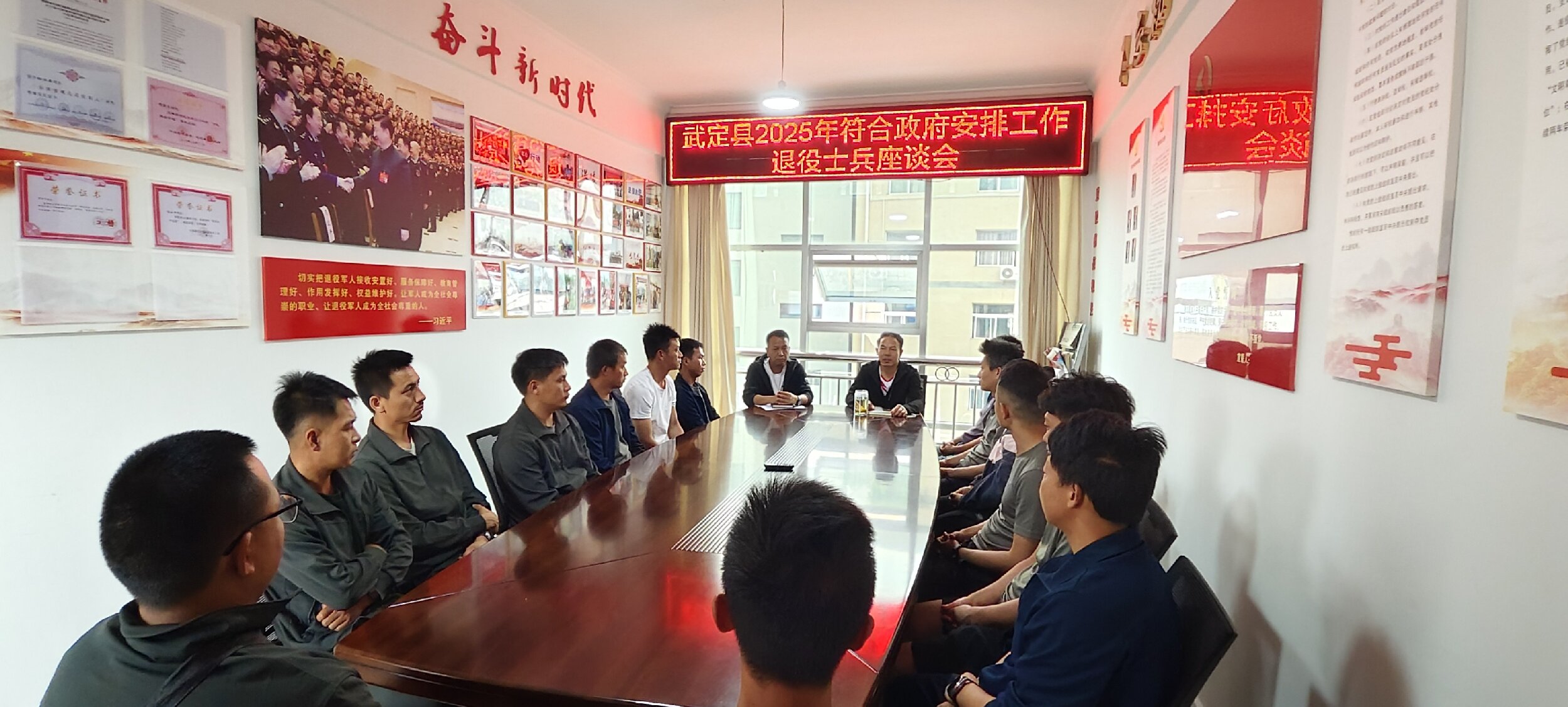 近日,武定县退役军人事务局召开2025年度符合政府安排工作退役军士座谈会。局领导班子成员、相关科室负责人、符合政府安排工作条件的退役军士参加了此次会议。