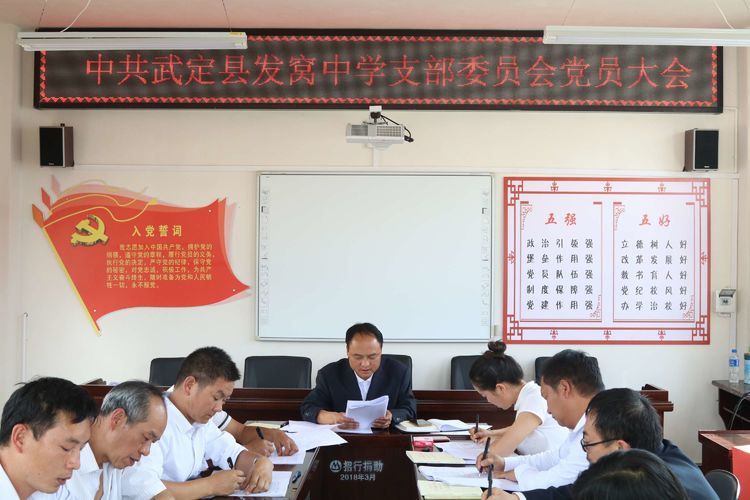 第七项议程:召开中共武定县发窝中学支部七届一次委员会。党支部书记李生俊同志明确了宣传委员王孟娟同志和组织委员李洪波同志的职责,并安排部署了党支部的相关工作。