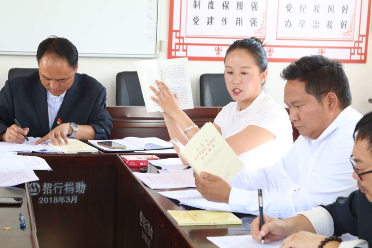 第一项议程:党支部书记,校长李生俊同志传达9月26日至27日武定县“不忘初心、牢记使命”主题教育党总支(支部)书记培训会的会议内容和精神。