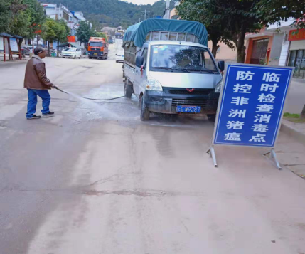 三、加强生猪及其产品流通监管,防范病源传入。发窝乡及时在阿庆争、山品和农业农村服务中心设立非洲猪瘟防控临时检查消毒点,安排专人24小时值班值守,对生猪及其制品贩运车辆进行检查、登记和消毒,严防猪瘟病源流入我乡。加大宣传力度,生猪贩运车辆进村入户收购生猪必须持有消毒证明、备案卡并把车辆停在距村2公里以外的地方。