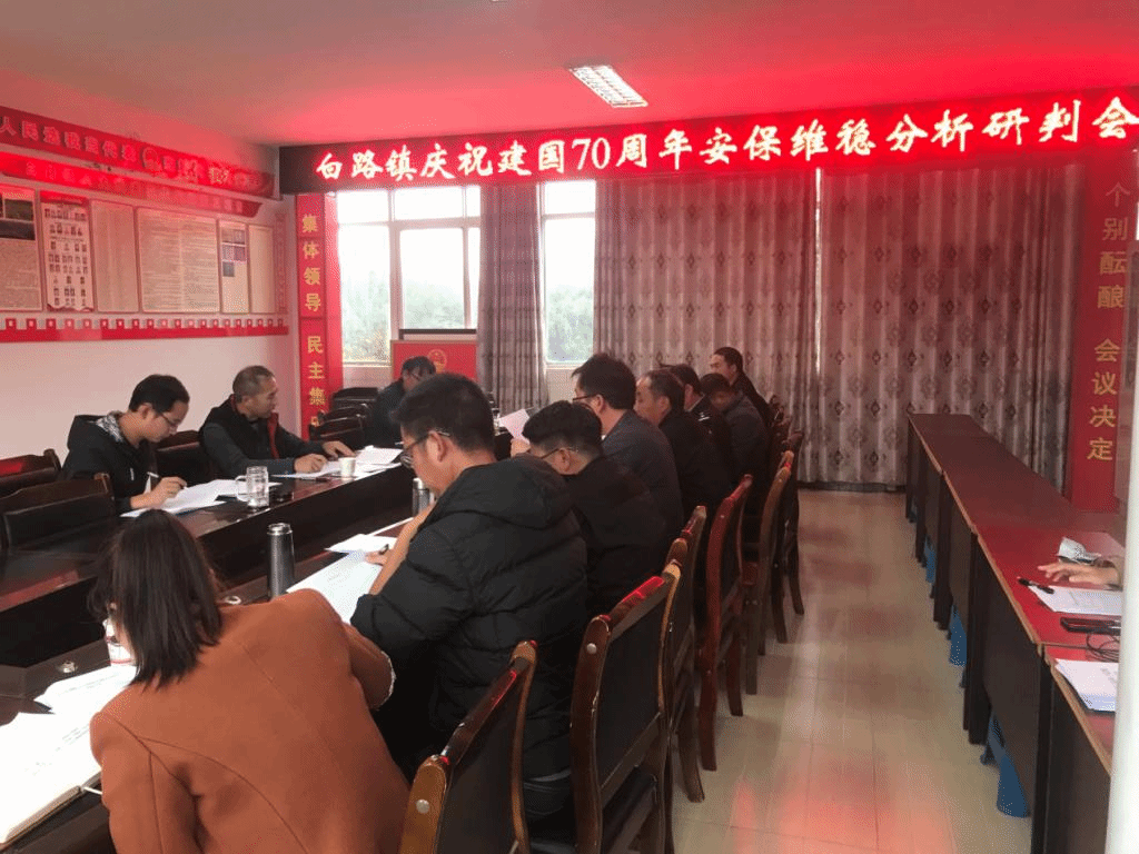 镇人民政府镇长对县委常委、县委政法委毕书记到白路镇调研扫黑除恶工作、中华人民共和国成立70周年大庆安保维稳等工作情况及相关指示要求作了传达和学习,并针对当前两项重要工作作了要求:一是各职能部门、各领导小组成员单位、各村党总支站位再提高、责任再压实;二是中央督导反馈问题整改加快进度,对照清单真改实改,全面整改到位;三是完善痕迹档案,规范整理台账。