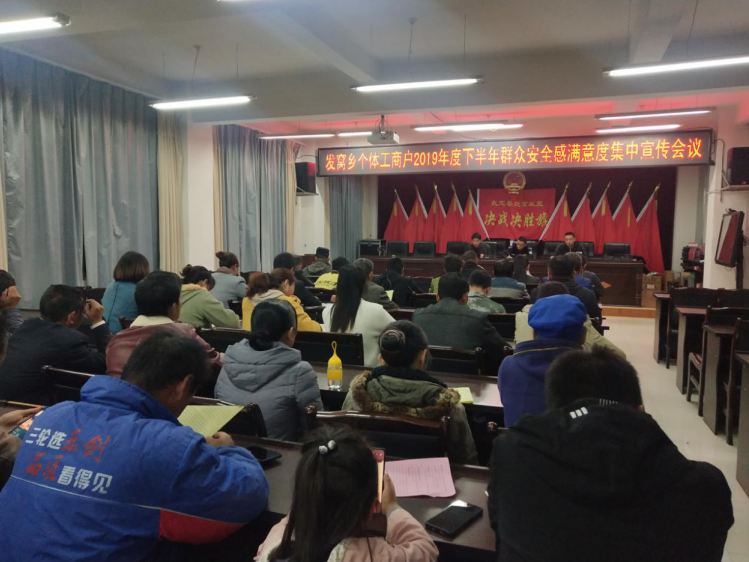 为认真贯彻落实11月14日全县群众安全感满意度推进会议精神,将我乡群众安全感满意度宣传工作推向实处、深处。近日,乡综治办、派出所、市场监督管理所联合,召集发窝乡集镇个体工商户开展集中宣传会议。
