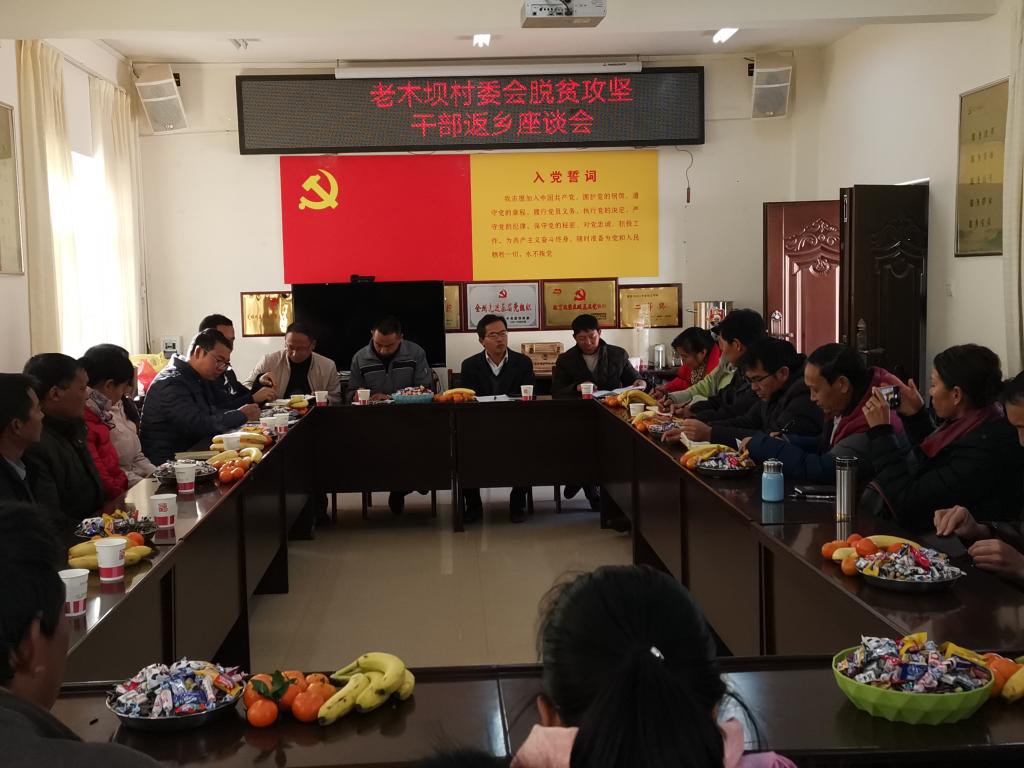 返乡干部、驻村干部、镇级干部、村三职、村民小组长坐在一起,开一个座谈会,驻村干部、镇级干部向返乡同志通报本村脱贫攻坚成效,返乡干部用家乡情怀,讲脱贫攻坚政策,教育引导父老乡亲,积极配合工作,增进干部群众感情,提升群众对脱贫攻坚工作的认同感、满意度。利用同吃家乡饭,共叙家乡情的机会,增进村乡邻里感情。