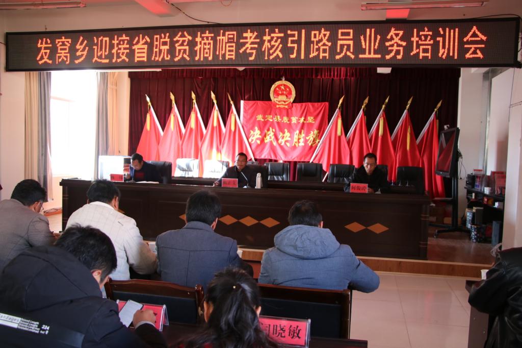 在即将迎来省脱贫摘帽考核的关键时刻,1月20日上午,发窝乡再次进行引路员培训。培训会由乡党委何俊涛副书记主持,乡党委副书记、乡长祖正文对各村党总支书记和全乡120多名引路员进行培训。