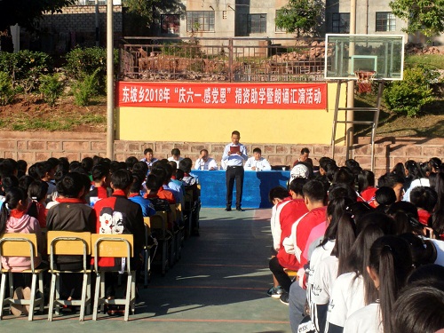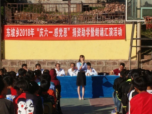 “竞千秋伟业,当推教育为先;绘桑梓宏图,全赖广育英才”。东坡要发展,教育需先行。为缓解贫困学子家庭窘境,在全乡构成尊师重教、阻断贫困代际传承的良好社会氛围,近日,东坡乡筹备开展了2018年“庆六一,感党恩”捐资助学暨朗诵汇演活动,活动仪式在东坡中学教学楼前操场举行。
