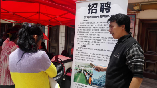 下午一点左右,招聘会会场上挤满了人,工作人员热情接待,向前来应聘的人员详细介绍企业管理、工作环境、工资待遇,详细耐心地解答求职者提出的每一个问题。在面对求职人员担心自己由于文化程度低,无法胜任就业岗位的困惑,招聘公司介绍说,他们会根据各岗位的不同要求和员工的具体情况开展思想、业务和技能培训,同时针对市场竞争情况和知识发展、采取多种的培训方式进一步提升员工的思想、知识、技能和综合素质。猫街镇仓房村委会书记李泽珍介绍说:“我们村上一批务工人员中已送往珠海一人,目前情况非常好,待遇也好,今天我除了带本村求职人员来参加这个招聘会,还特意把村组干部也带来了,目的就是要让村组干部到村里做好宣传引导,让大量的农村劳动力通过就业脱掉贫困帽,过上幸福的日子。”