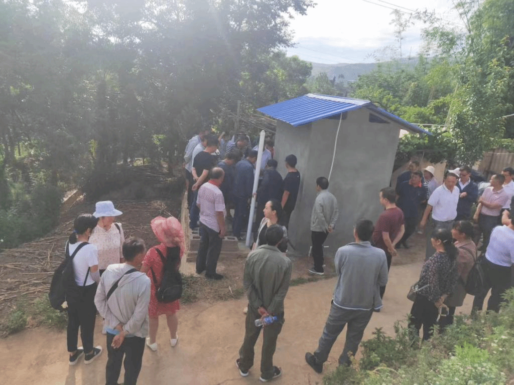 参会人员首先来到乐美村委会小河口村开展“农村厕所革命”现场观摩交流。交流会上,项目责任人通过边讲解边演示.