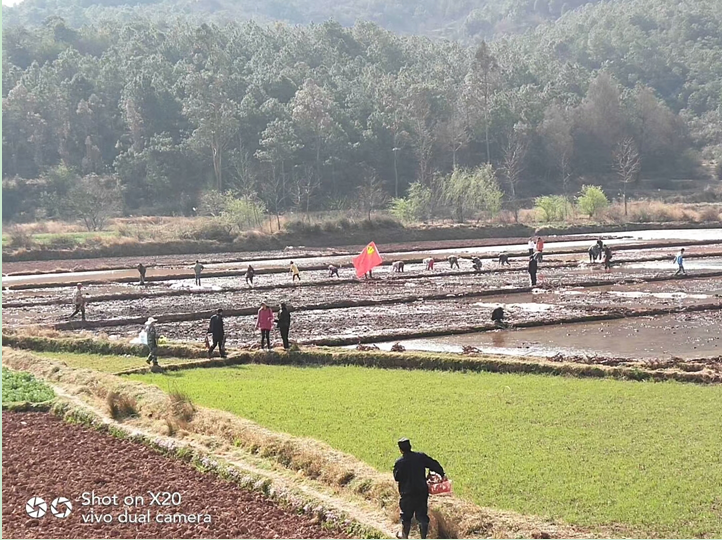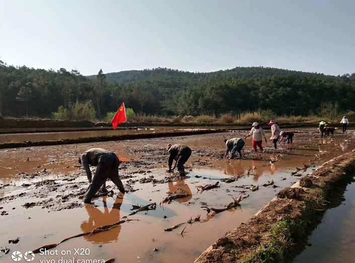 主题党日活动依托全镇产业发展热潮,丰富党组织活动内容、方式和载体,组织党员同志赶赴产业发展一线参与建设工作。在唐家村委会莲藕种植田内,党旗飘飘,党员同志们的身影忙碌于田间地头。尽管三月的气温已回暖,但田里的水温依然冰冷,党员同志们充分发扬不怕苦、不怕脏、不怕累的光荣传统,一组负责搬运藕苗,一组负责拉线排放藕苗,一组负责把藕苗埋入泥土之中,分工协作大大提高了工作效率,其浓厚的劳动氛围也感染了周围群众。