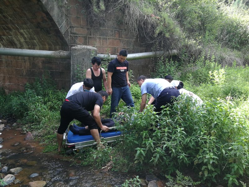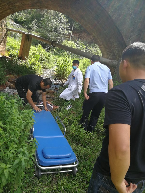 派出所民警辅警及时联合卫生院急救人员、报警人夫妇和部分群众合力用担架将伤者从桥下抬到救护车上送医治疗,交通事故原因还在进一步调查中。