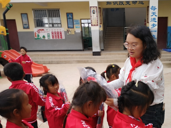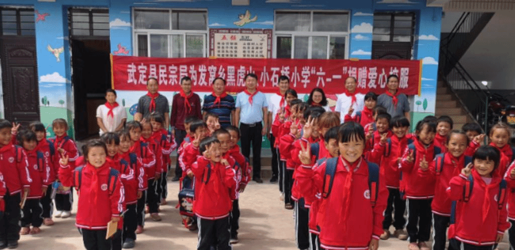 近日,武定县民宗局局长苏兴禄一行到发窝乡黑虎山小学和小石桥小学开展捐赠活动。苏兴禄实地查看了两所学校基础设施建设情况,详细了解教育教学开展情况,并向两所小学的学生捐赠价值10000余元的校服、书包、文具盒。