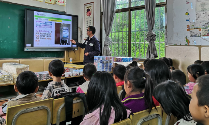 课堂上,巾帼志愿服者务队队员陈晓东向花园小学的孩子们详细介绍了“电”,全面讲授了发电原理、用电安全、触电表象、自救互救等电力知识。并与学生进行了有趣的有奖问答互动,孩子们兴趣高涨、纷纷竞答,现场气氛活跃。