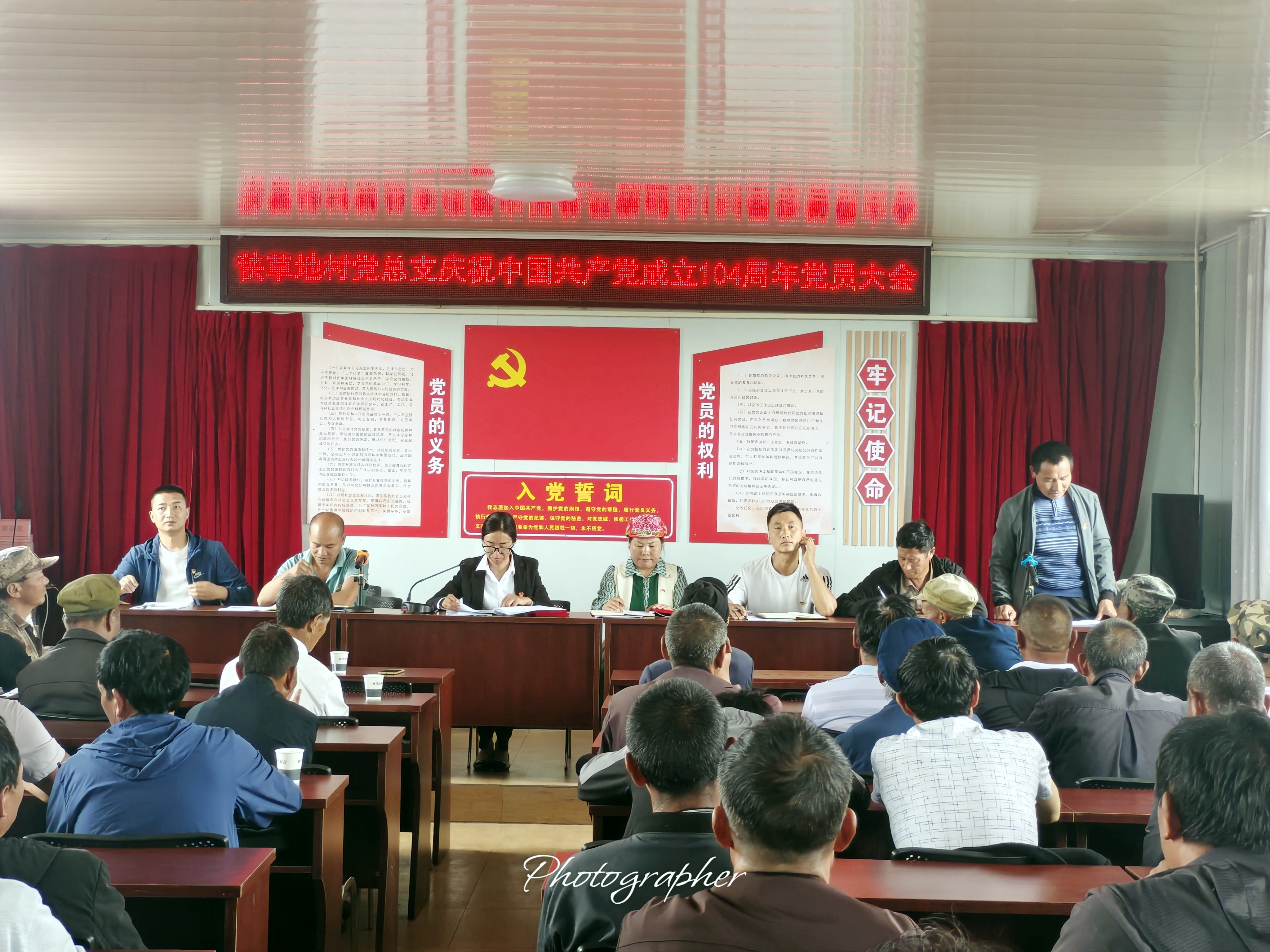 为传承党的光荣传统、凝聚乡村振兴奋进力量,2025年7月1日,秧草地村党总支在村会议室举办庆祝中国共产党成立104周年主题活动。村“三委”班子成员、驻村工作队员、全体党员及各村村干部齐聚一堂,以庄严仪式与丰富议程,向党的生日献上诚挚礼赞。