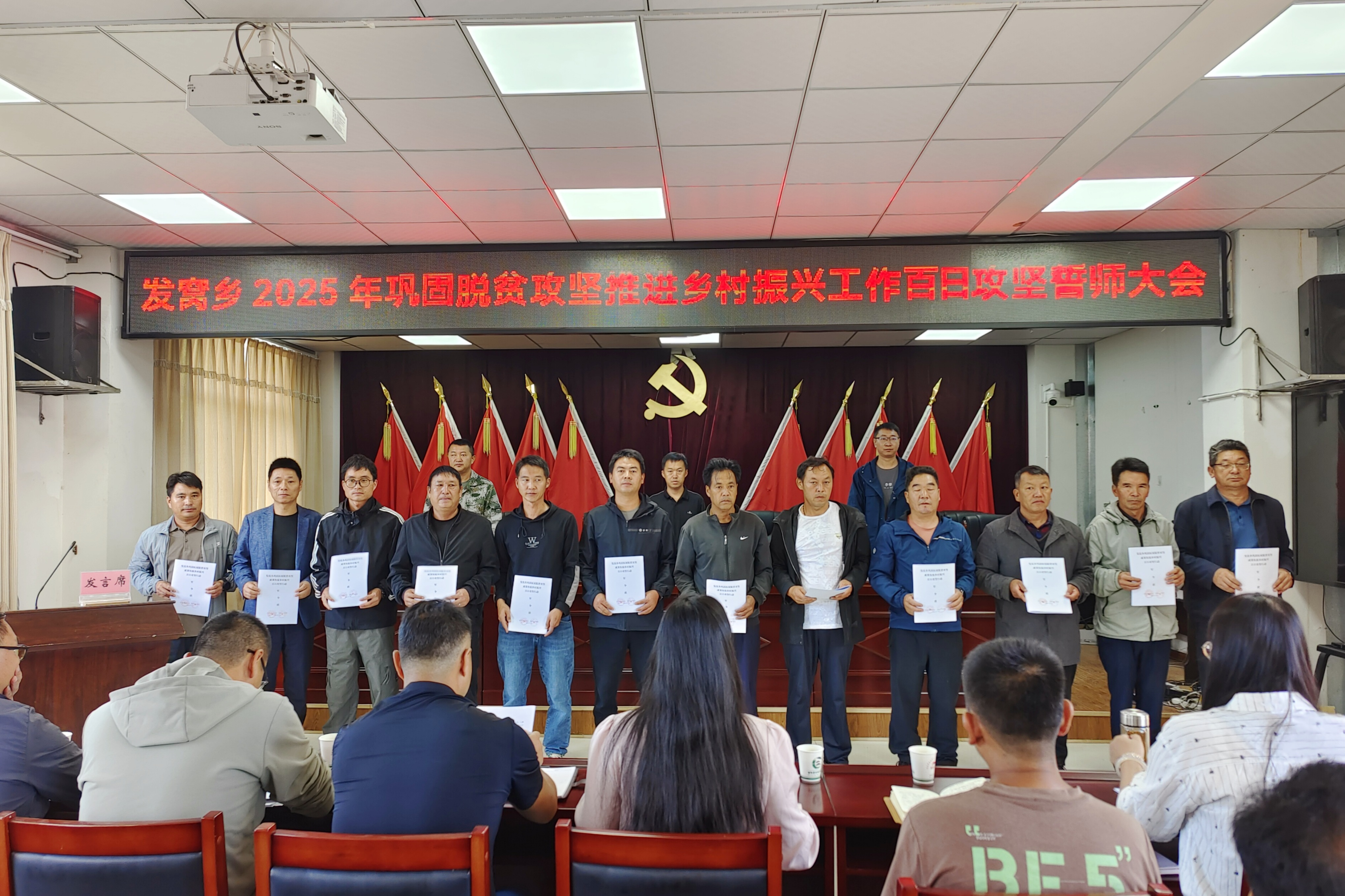 7月28日,发窝乡召开2025年巩固脱贫攻坚推进乡村振兴工作百日攻坚誓师大会,全面启动“大学习、大起底、大整改”专项行动,动员全乡上下统一思想、压实责任、凝聚合力,以决战决胜姿态,确保巩固脱贫成果推进乡村振兴五年过渡期圆满收官。