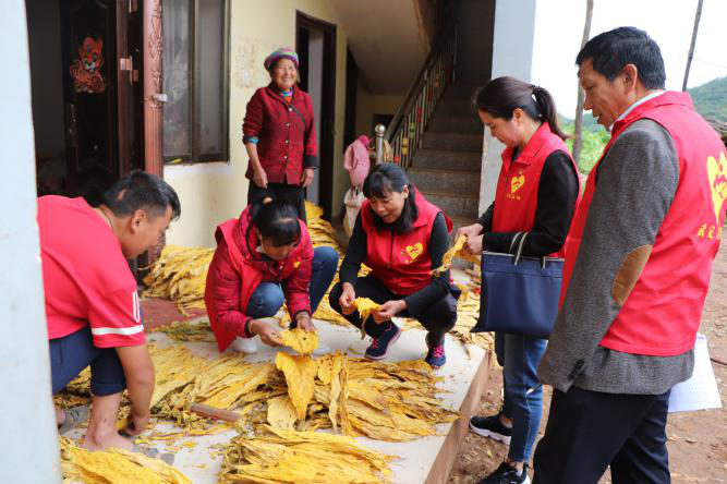 目前,针对烟叶站烤烟收缴量不足,仍然存在不少烟农远未完成今年下达的烤烟合同量的情况,志愿服务队走进烟农家中,了解他们目前烤烟出炉情况和烟叶分拣情况、督促完成合同指标产量、帮助烟农抬烟、捡烟及技术指导,积极助力烟叶按时按量完成,助推烟叶产业高质量发展。同时,入户登记车辆报废信息采集,宣传报废车辆不报废的危害及宣传2023年城乡居民基本医疗保险收缴,并对近期疫情防控严峻形势进行部署。