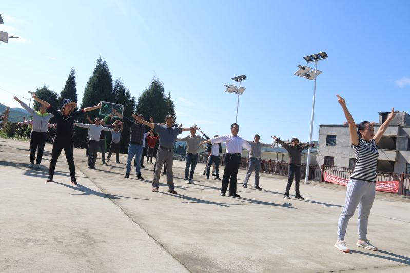 为积极推进工间操活动,文化和旅游广播电视体育中心负责人参与“工间操”的培训后,带领着所有干部职工做广播操。每个工作日上午10点,伴随着工间操音乐的响起,大家纷纷走出办公室,在政府篮球场集中,跟随领操员一起运动。尽管有的动作不太熟练,但在场每一位都积极认真参与。短短30分钟的运动时间,大家活动身体,舒展身心,交流心得,气氛温馨融洽。