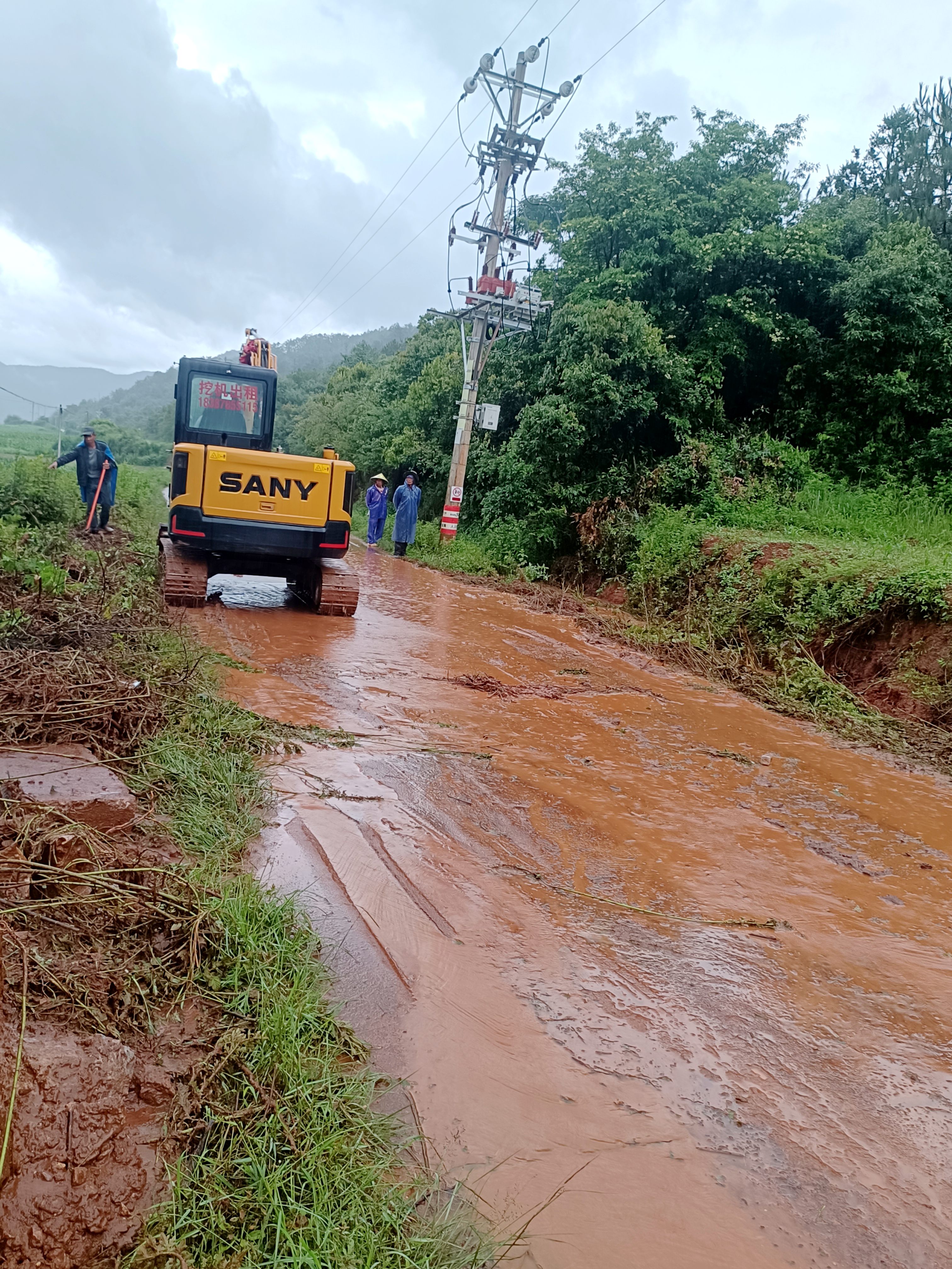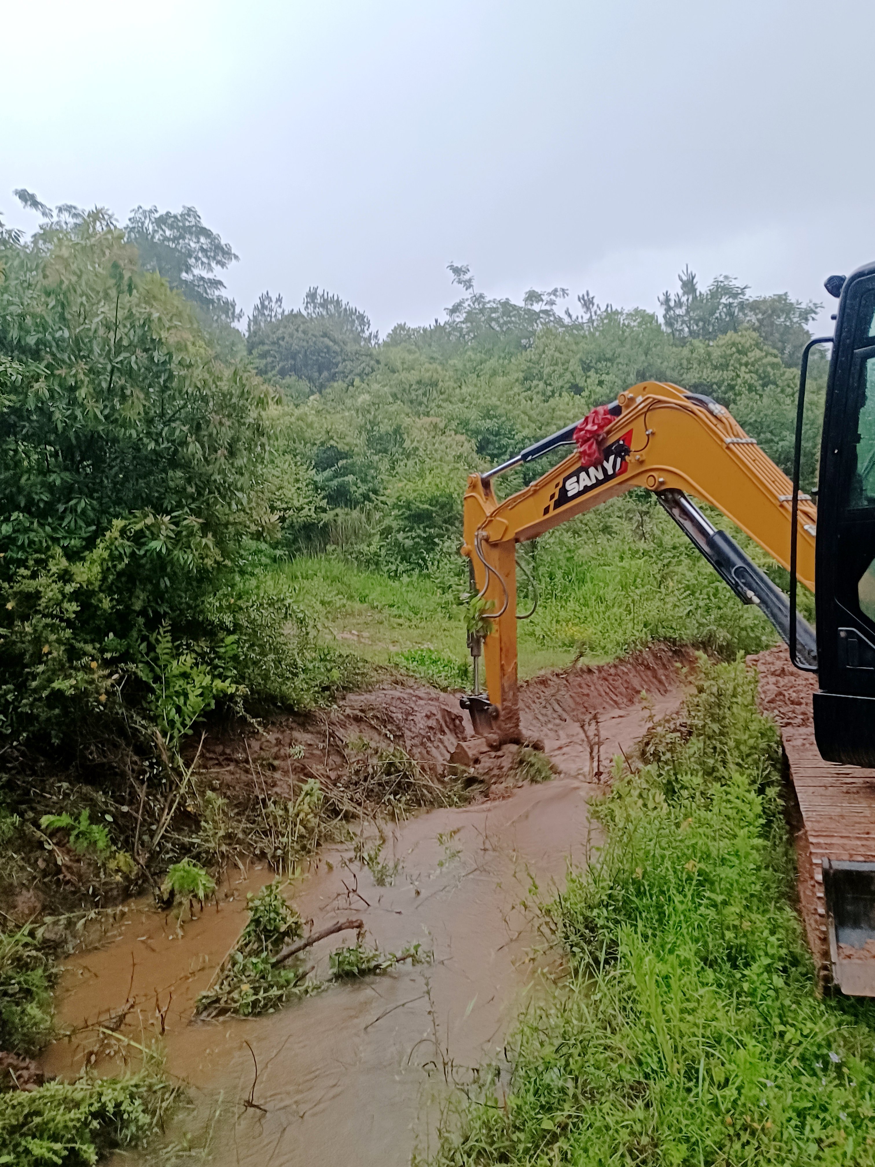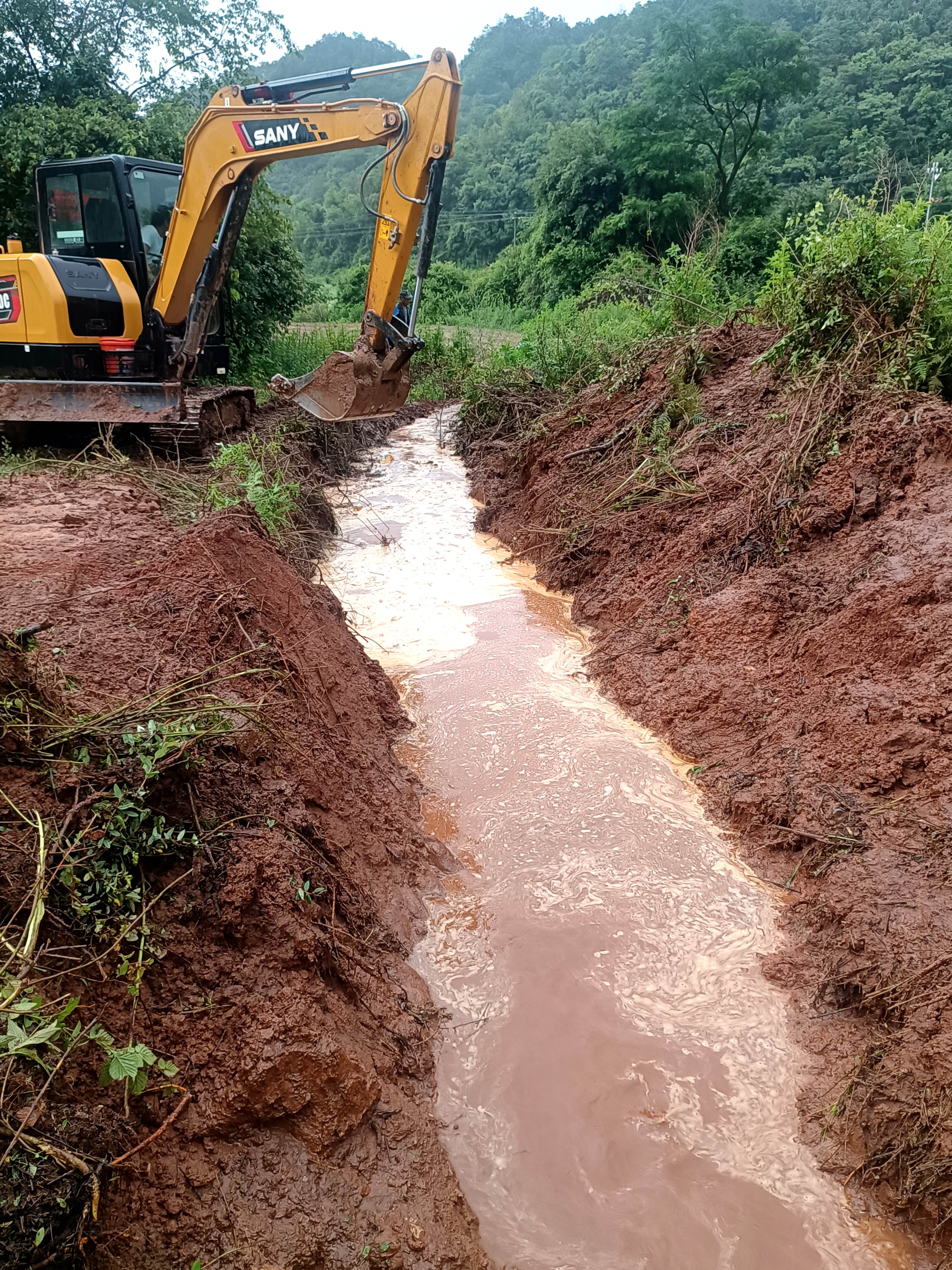 汛情发生后,村委会第一时间组织工作人员深入各村民小组进行全面排查,详细掌握受灾情况,并立即启动应急预案。考虑到部分路段塌方和沟渠堵塞情况严重,村委会紧急租赁一台挖机参与抢险作业,同时号召各村民小组积极响应,迅速组建起由村干部、党员和村民志愿者组成的抢险队伍,人机协同投入到道路清障与沟渠疏通工作中。