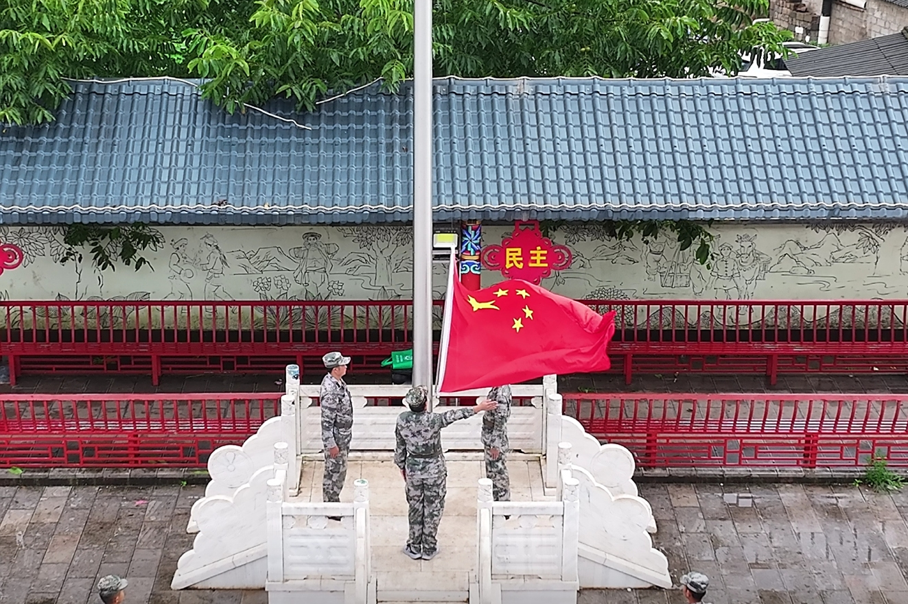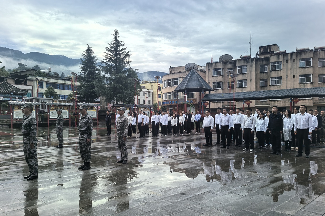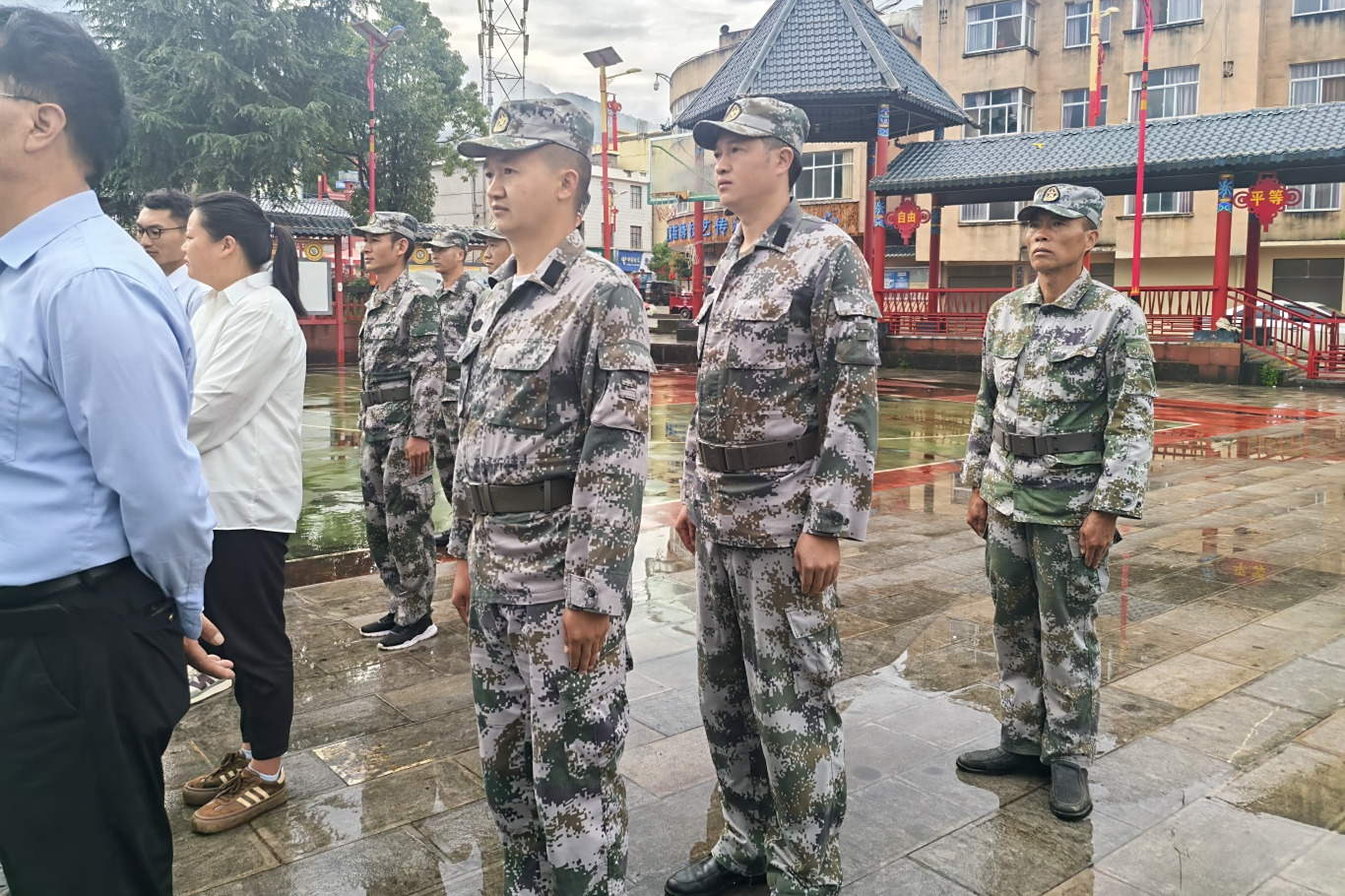 7月31日上午8:00,发窝乡民族文化广场庄严肃穆,由9名退役军人干部组成的护旗手昂首挺胸,护卫着鲜艳的五星红旗走过广场,伴随着国歌响起,五星红旗冉冉升起,全场肃立致敬。