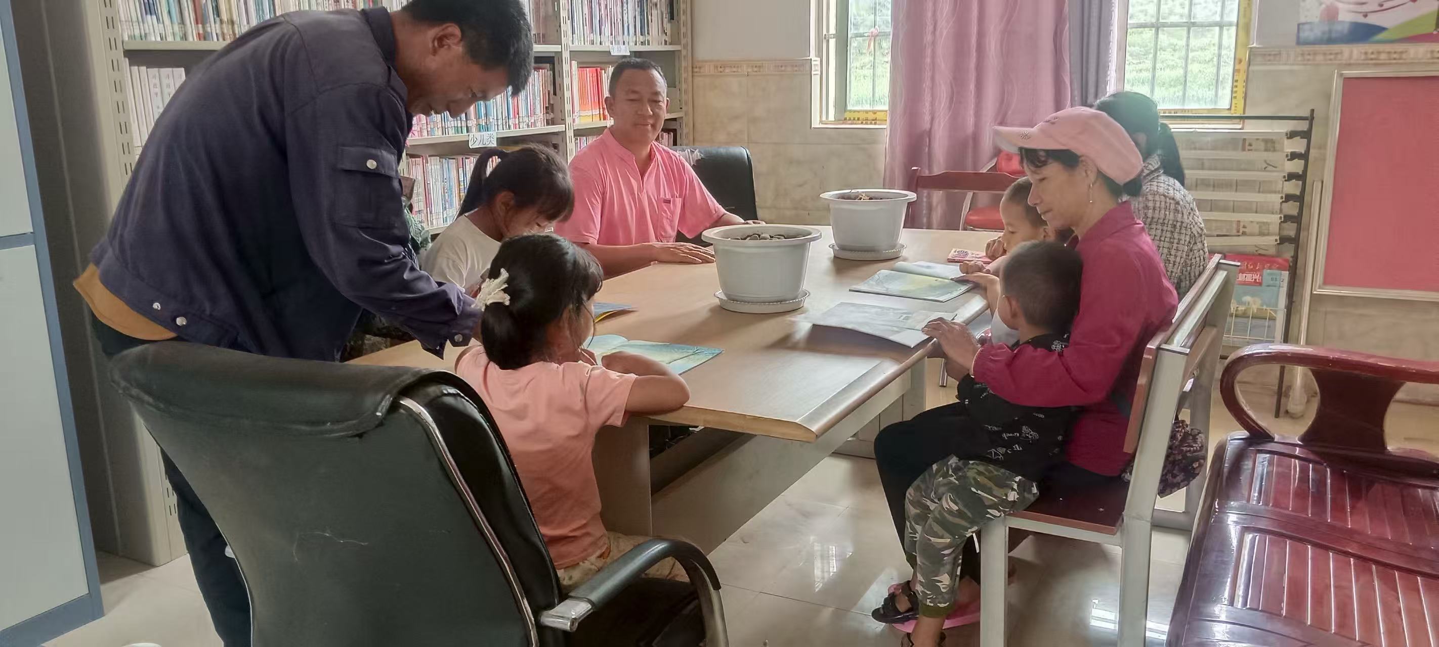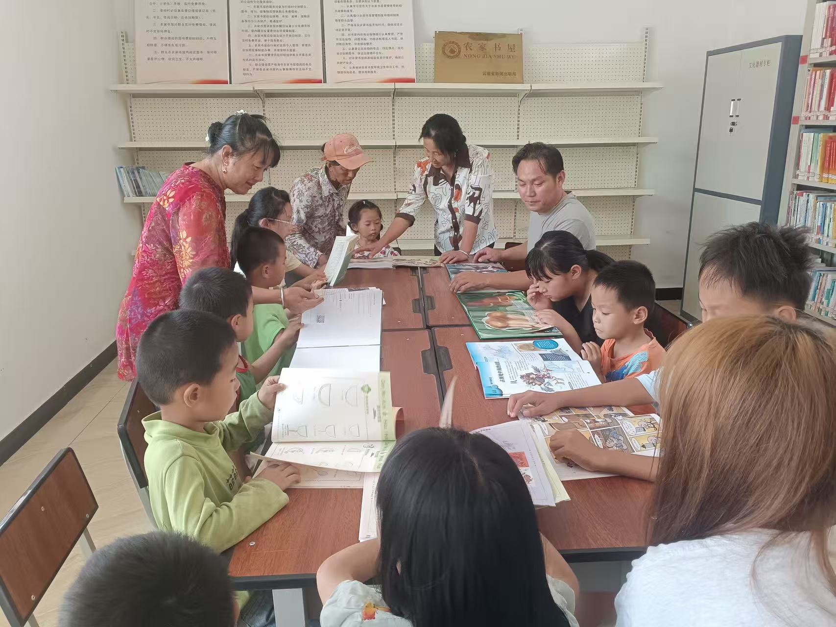 亲子阅读活动现场,各村农家书屋精心准备了涵盖经典童话、科普读物、国学启蒙等适合不同年龄段儿童的书籍。现场设置了亲子共读、故事分享等环节,孩子们在家长的陪伴下,沉浸在知识的海洋中,享受阅读的静谧与快乐。告别电子产品的喧嚣,活动现场充盈着父母轻声的讲解、孩子好奇的提问和会心的笑声。“平时农忙,要么忙着打零工,静心陪孩子读书的时间真不多。这个活动特别好,孩子投入,我也能学到东西,感觉和孩子的心更近了。”东坡村村民李大哥欣慰地说道。
