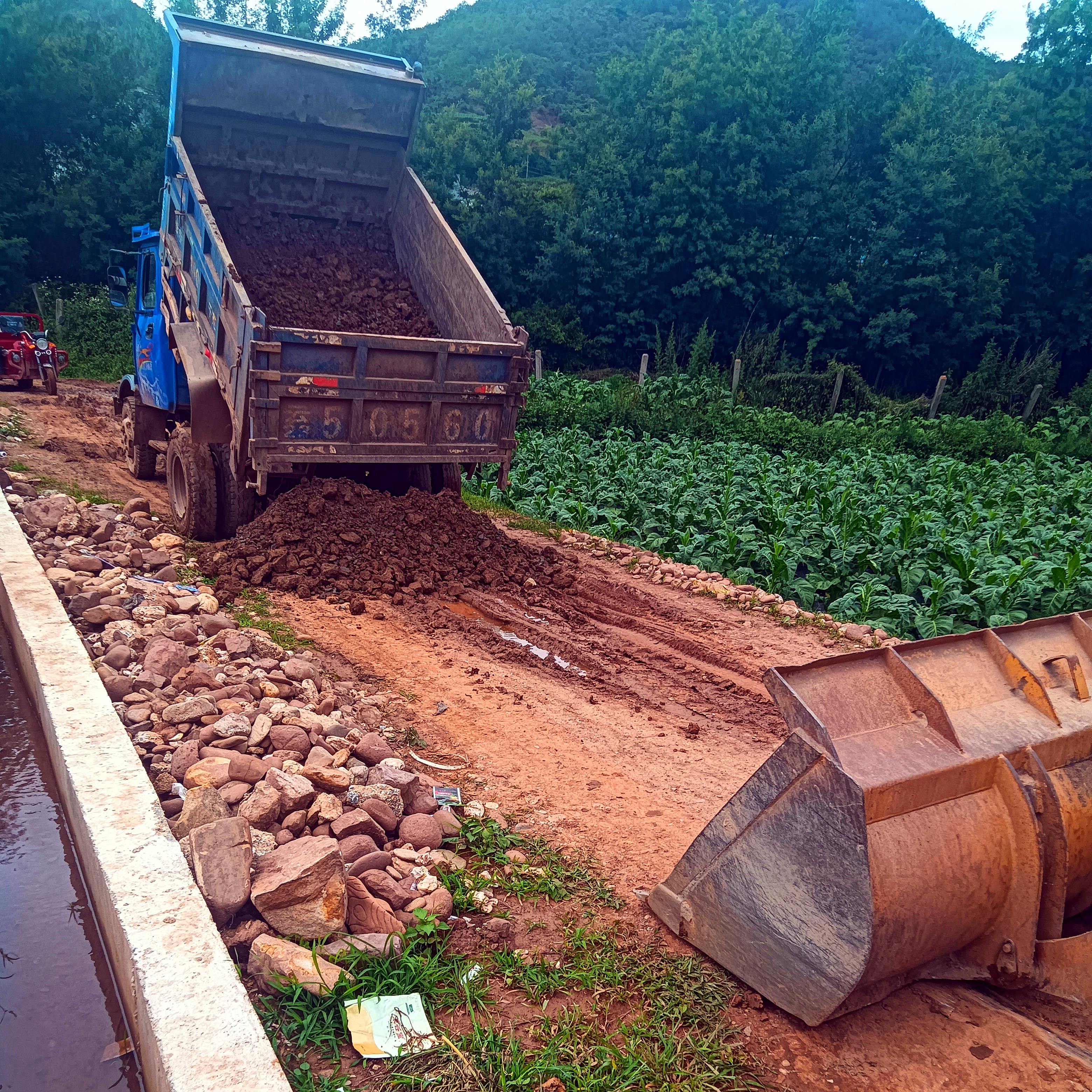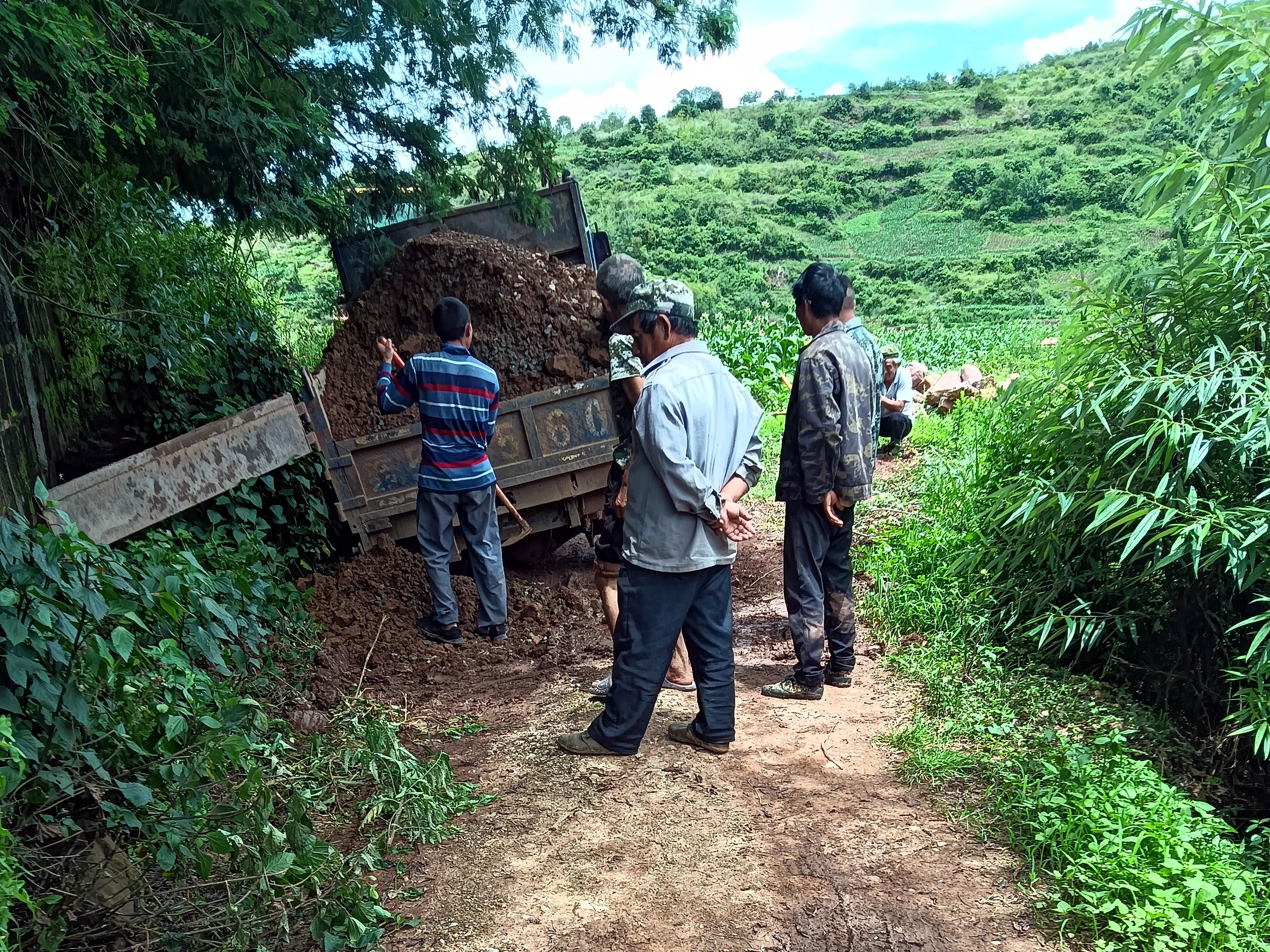 雨势刚停,村委会便迅速调度挖掘机、推土机等机械设备进场。参加行动的村民们也按时到位,按照既定分工投入清理工作。党员干部们以身作则,带头拿起工具清理路边的碎石和淤泥。远途部分群众见状,也主动加入到队伍中来。大家齐心协力,沿着塌方路段分段作业。挖掘机将大块的泥土和石块挖起,推土机紧随其后将松散的泥土推至路边,拖拉机司机们则有序地将清理出的泥土转运到村委会指定的弃土点,避免二次堆积影响环境。