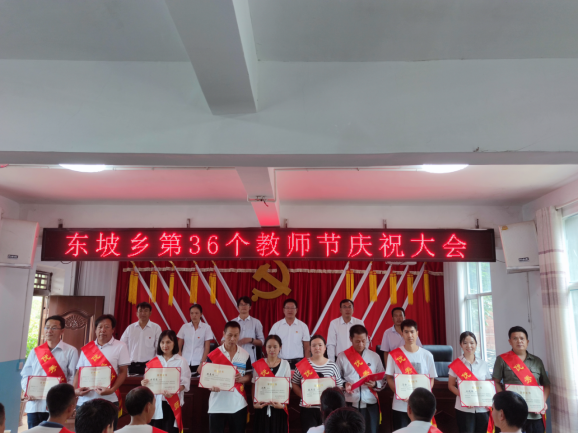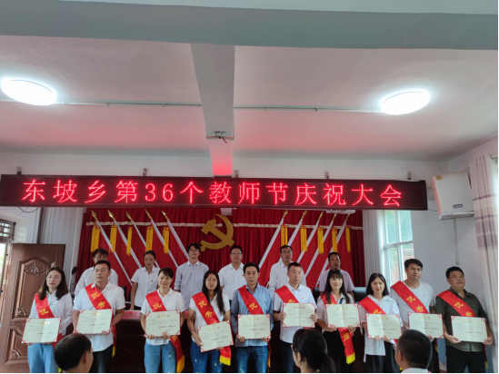 为表扬东坡乡教育工作中涌现出来的先进典型,激发全乡广大教育工作者立德树人、教书育人的使命感和责任感,营造全乡尊师重教的浓厚氛围,进一步推动东坡教育高质量发展。9月10日,东坡乡庆祝第36个教师节暨优秀教师表扬大会顺利召开。乡党政班子成员、东坡中学、东坡小学全体教师及受表彰的教职工共90余人参会。