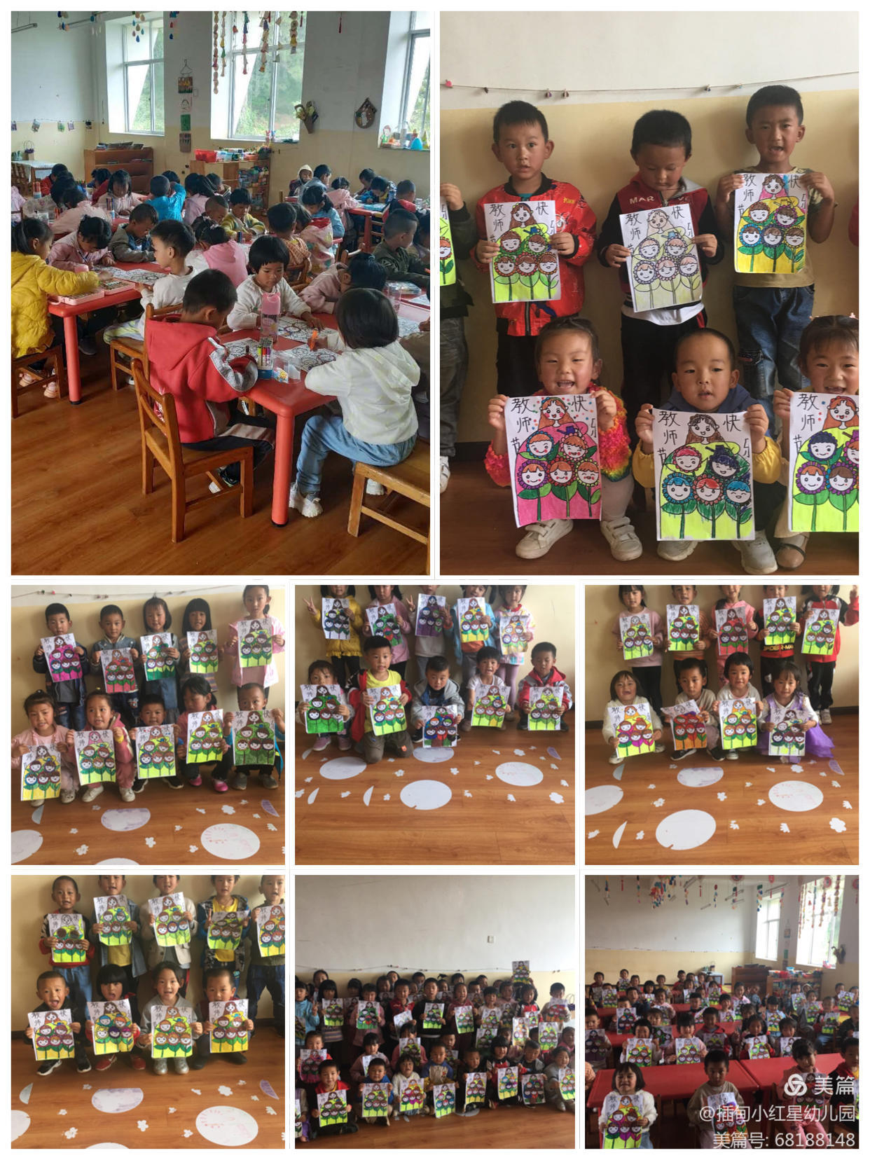 尊师重教是我国的传统美德,为发扬尊师重教的优良传统,为庆祝第36个教师节,结合节日教育,插甸小红星幼儿园开展了感恩教师节的系列活动:孩子们想表达的爱,通过稚嫩的画笔呈现在画纸上。