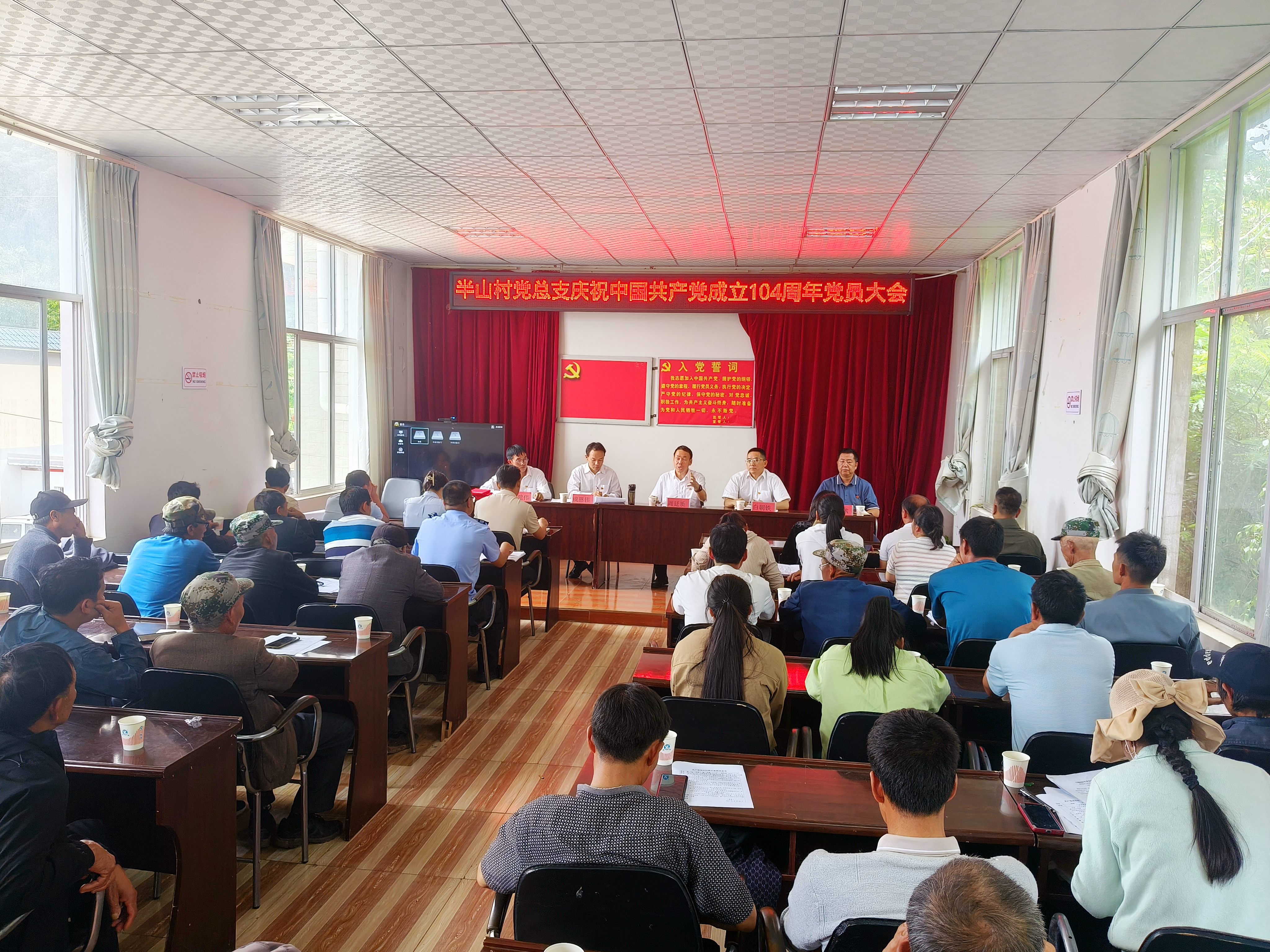 为庆祝中国共产党成立104周年,弘扬党的优良传统,进一步增强党组织凝聚力与战斗力,6月26日,猫街镇半山村党总支开展“忆百年征程 悟初心使命”主题党日活动。县政协主席周廷质、州邮政管理局副局长白朝铁、猫街镇党委书记虎圣槟、县退役军人事务局党组书记兼局长戍恩伟,以及州、县、镇三家挂包单位党员、半山村党总支全体党员、预备党员和村组干部共60余人参与活动。