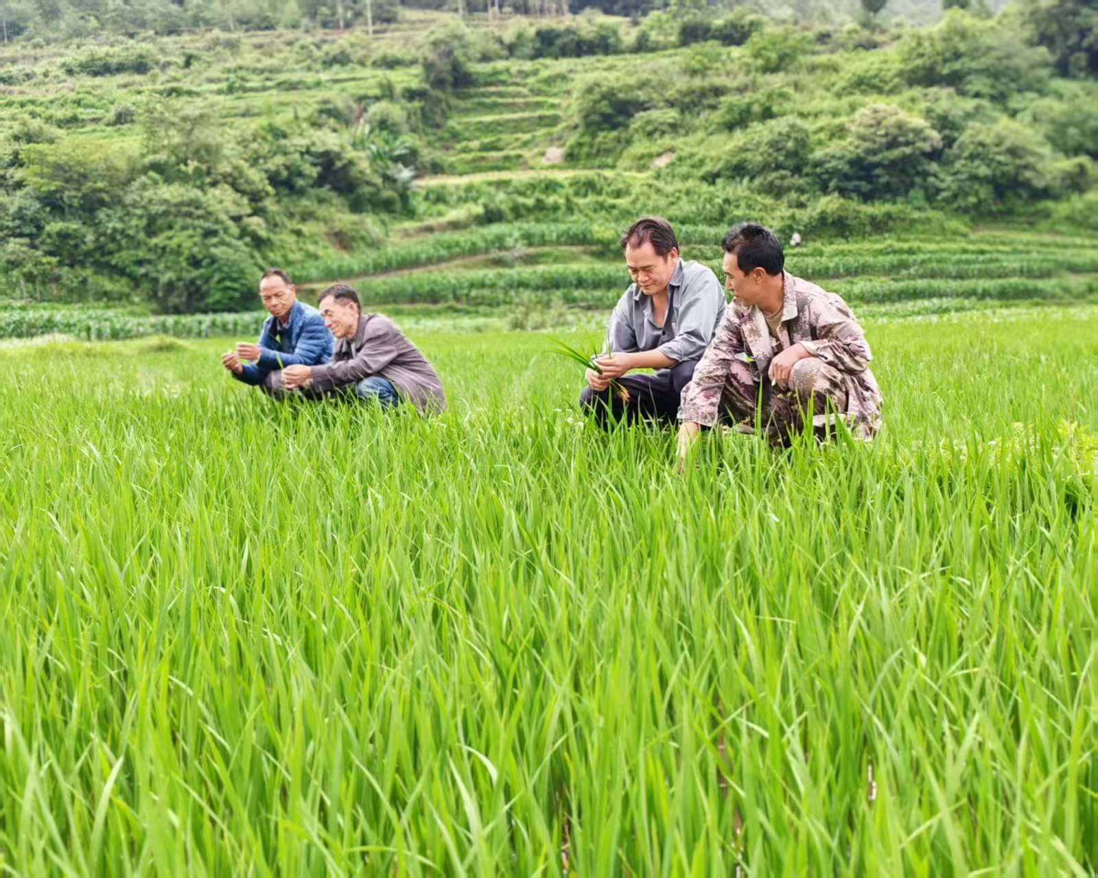 近期,增益村的田间地头一派繁忙景象,村民们正忙着喷洒除草剂、人工拔草,精心管护着绿油油的稻田。放眼望去,连片的稻苗长势喜人,四处散发着阵阵稻香,数百亩水稻长势喜人,宛如一幅生机盎然的田园画卷。