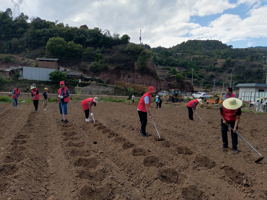 烈日炎炎,挡不住志愿者们为民服务的热情。活动现场,大家热情高涨,纷纷卷起衣袖、拿起锄头,“扎”进地里,“嚓嚓嚓”的挖地声此起彼伏,不一会工夫就平整了一大片,群众喜在脸上,志愿者们乐在心里。随后,党员干部们化身“春耕服务队”,撸起袖子、俯下身子,与烟农并肩劳作。放苗、浇水、施肥、覆膜……田间地头=团徽闪耀,鲜红的党旗、团旗在春风中高高飘扬,勾勒出一幅“党群同心战春耕”的生动画卷。