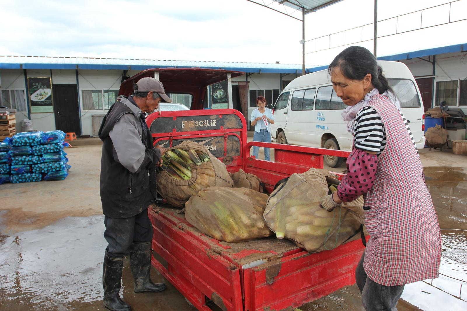 茭白又名茭笋、茭瓜,秆嫩茎肥,类似竹笋,嫩滑爽口,被誉为“水中人参”,是老百姓餐桌上常见的美食,其生长周期短、经济效益高。“我家种茭白已经有八九年了,今年是我到安德村流转土地种茭白的第四个年头,安德村一共种了300多亩,茭白亩产量在2.5吨左右。这是第一批采收的茭白,有800多公斤,清洗完毕就发往江苏和上海。茭白价格高的时候可以卖到6元一公斤,价格低的时候3元一公斤,八、九月份才是茭白的丰产期,高峰期平均每天用工60多人,一个月能付出务工费10余万元。”武定县茂田现代科技农业有限公司杨平介绍。