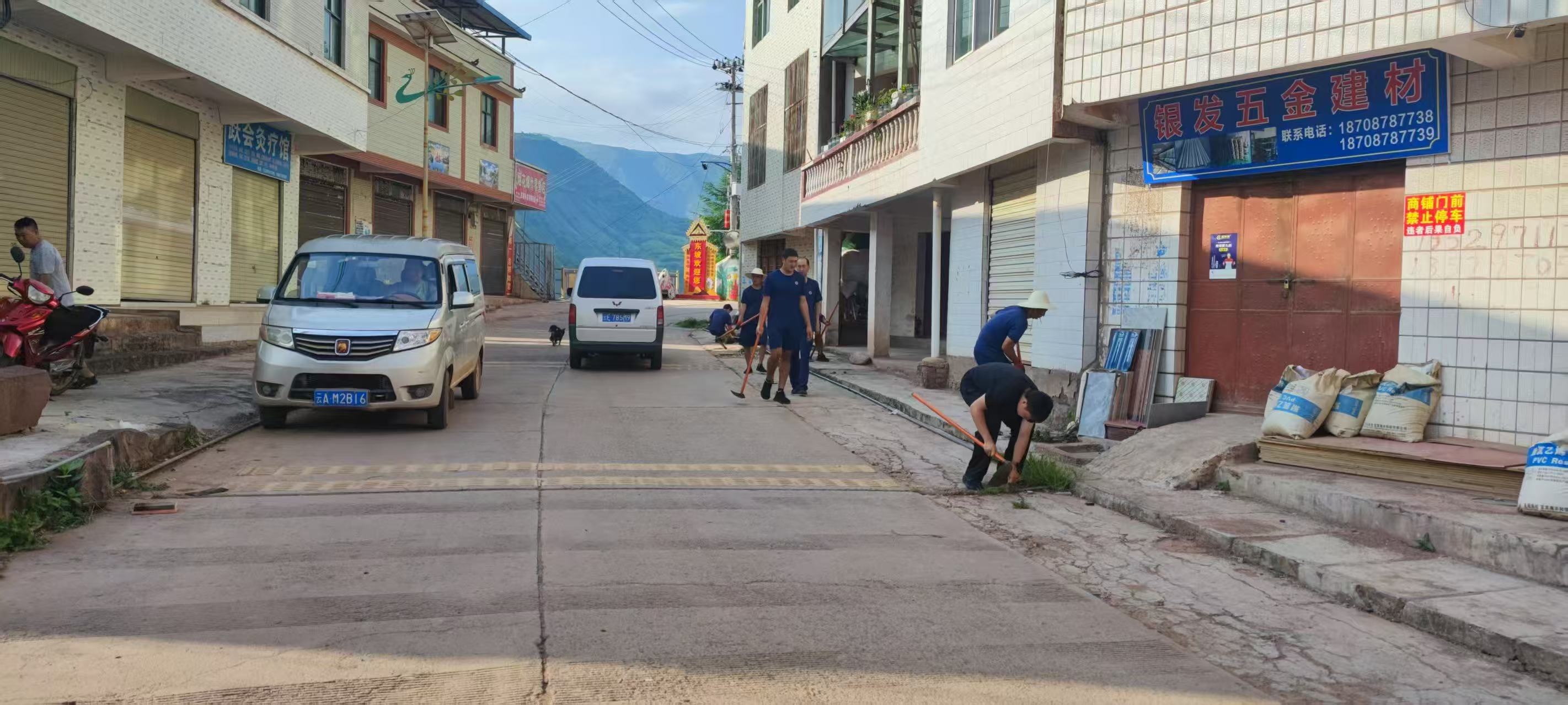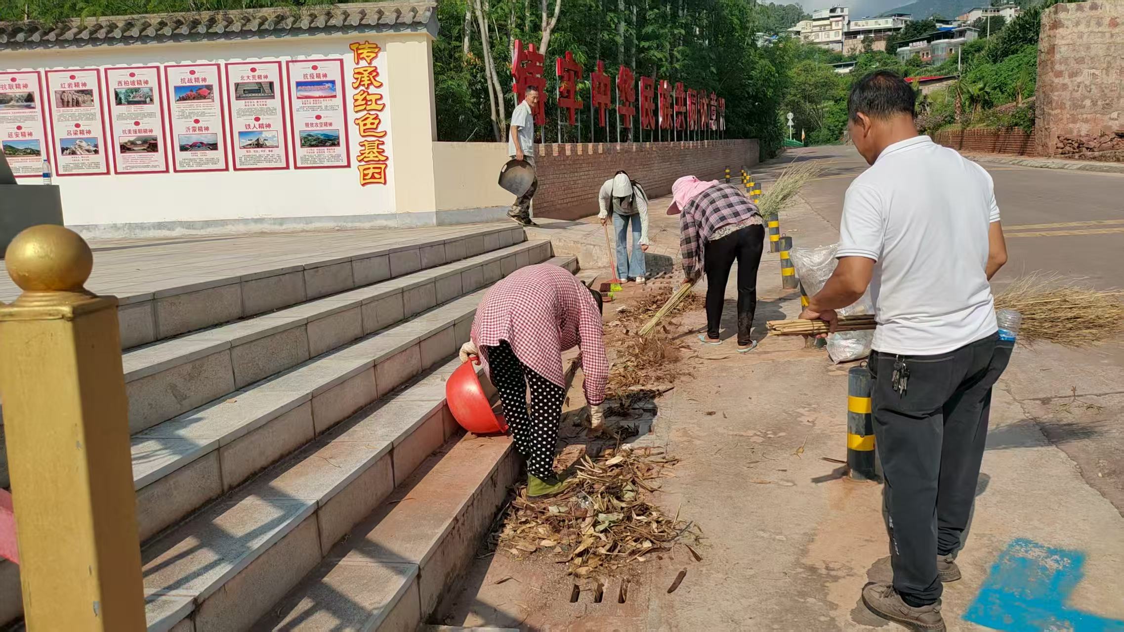 清晨的乡间小道上,党员领导干部率先拿起扫帚、铁锹、镰刀,充分发挥党员先锋模范作用,与干部群众并肩清理村道沿线垃圾、杂草和沟渠淤泥。此次行动重点攻坚房前屋后乱堆乱放、路边杂草以及卫生死角等顽疾。干部们俯身忙碌的身影穿梭在最脏、最累的角落,像一面面旗帜点燃了群众的参与热情。村民们纷纷拿起工具自发加入清扫队伍,铁锹碰撞的铿锵声、扫帚摩擦地面的沙沙声与欢声笑语交织在一起,形成“人人参与、共建共享”的生动局面。