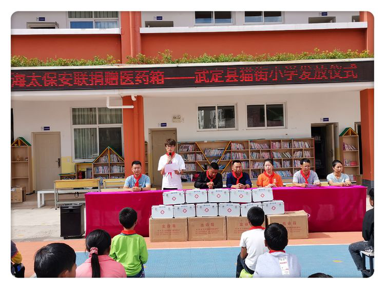 2020年9月16日下午,共青团武定县委干部和来自上海市嘉定区两名沪滇志愿者来到猫街中心小学开展医药箱捐赠,助力常态化疫情防控工作,同时响应当前火热开展的爱国卫生运动。