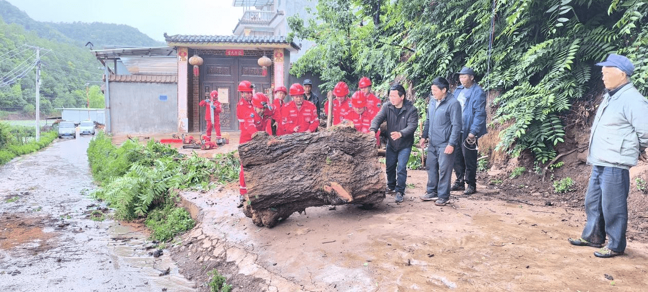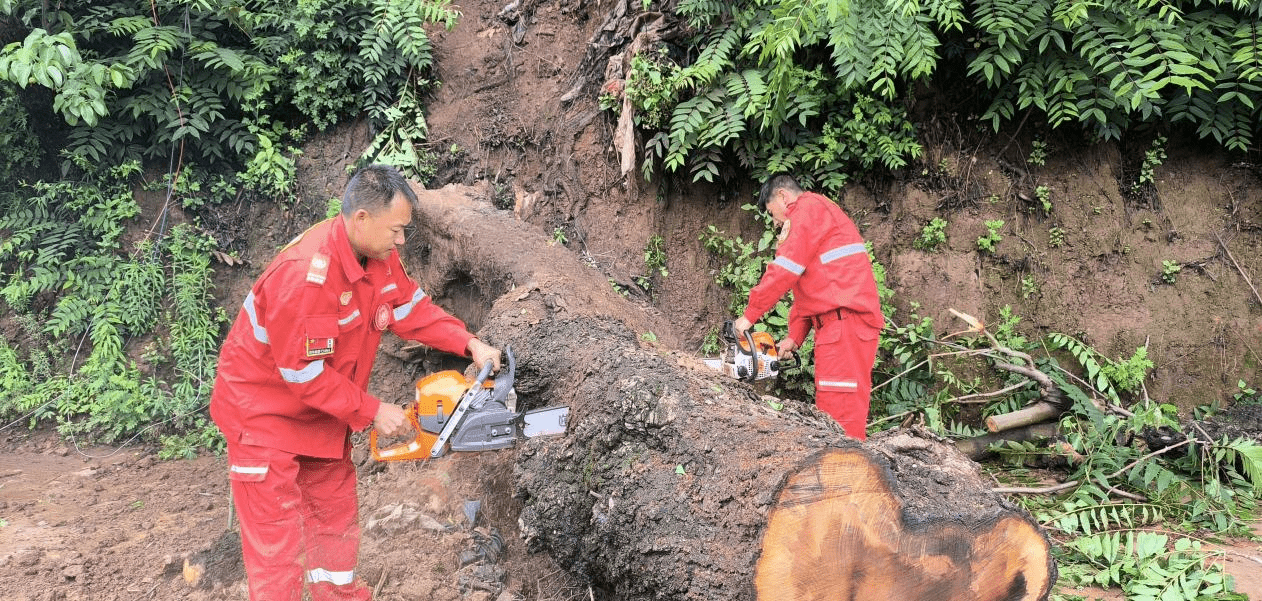 应急救援人员抵达现场核实无人员受伤后,立即利用专业工具对倒塌的树木进行清理。经过近1个小时的紧张作业,倒塌古树被彻底清除,路面交通随即恢复通行。在确认现场无次生灾害风险后,应急救援人员将现场移交给属地村组管理后才整理装备安全返回。