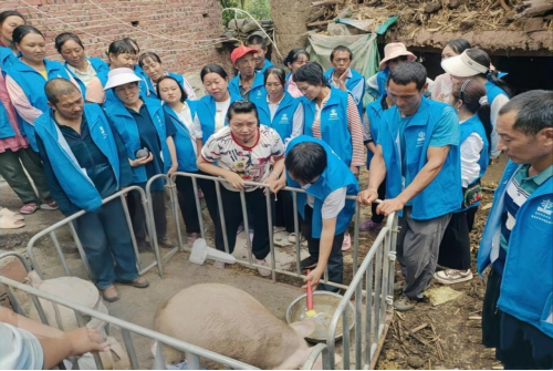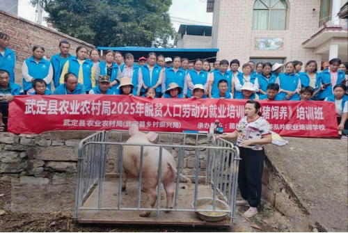 近日,武定县田心乡利米村委会利米乍村村民孙国英家的猪圈里热闹非凡,一场别开生面的生猪养殖技能培训正在这里开展。培训老师和学员围在猪圈旁,结合孙国英家的生猪养殖存在的问题进行培训讲解,学员们一边认真听讲,一边就自家养殖中遇到的问题提问,培训老师根据村民提到的存栏规模、圈舍布局等实际情况,有针对性讲解饲料配比、环境消杀等实用技巧,现场互动频频。
