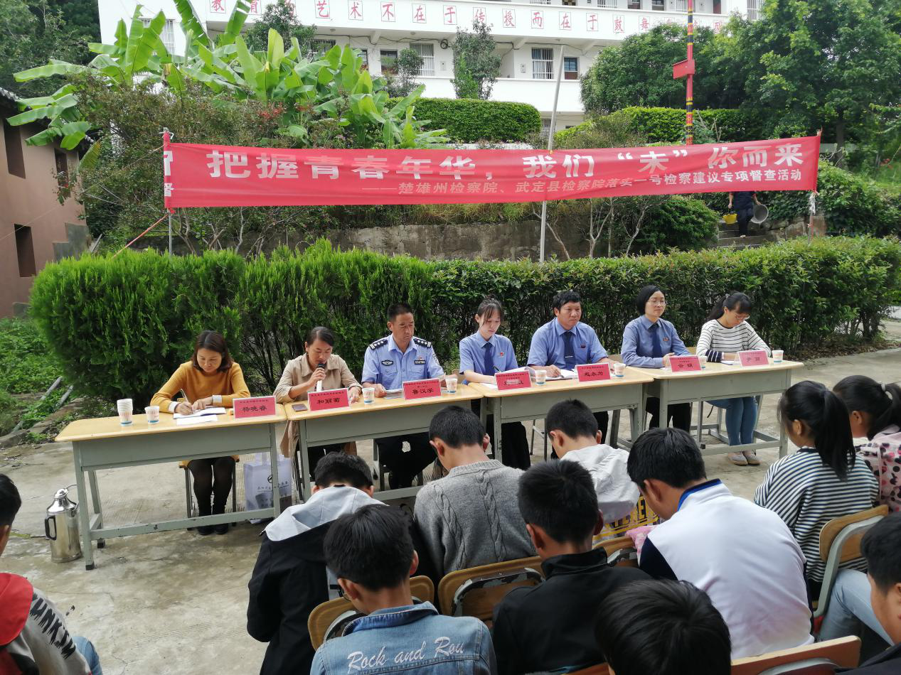为贯彻落实最高检“一号检察建议”,不断增强青少年法治观念,加强未成年人全方位司法保护工作,护航未成年人健康成长。2020年9月18日上午,楚雄州检察院、武定县检察院的检察官们走进万德中学,为全校师生送上了一堂题为“把握青春年华,我们未你而来”的主题法治教育讲座。讲座由校长杨晓睿主持,390余名师生参加了此次讲座。