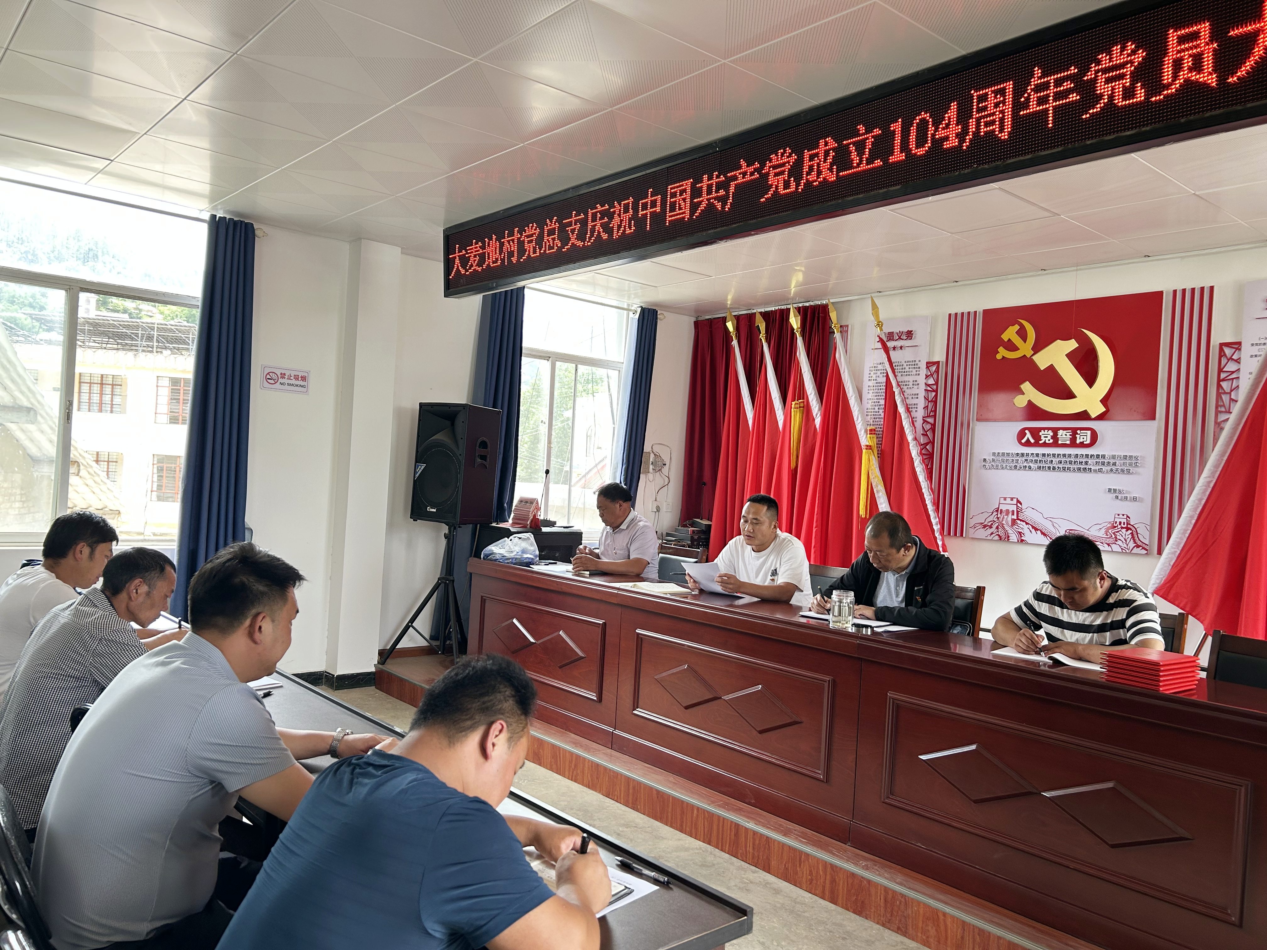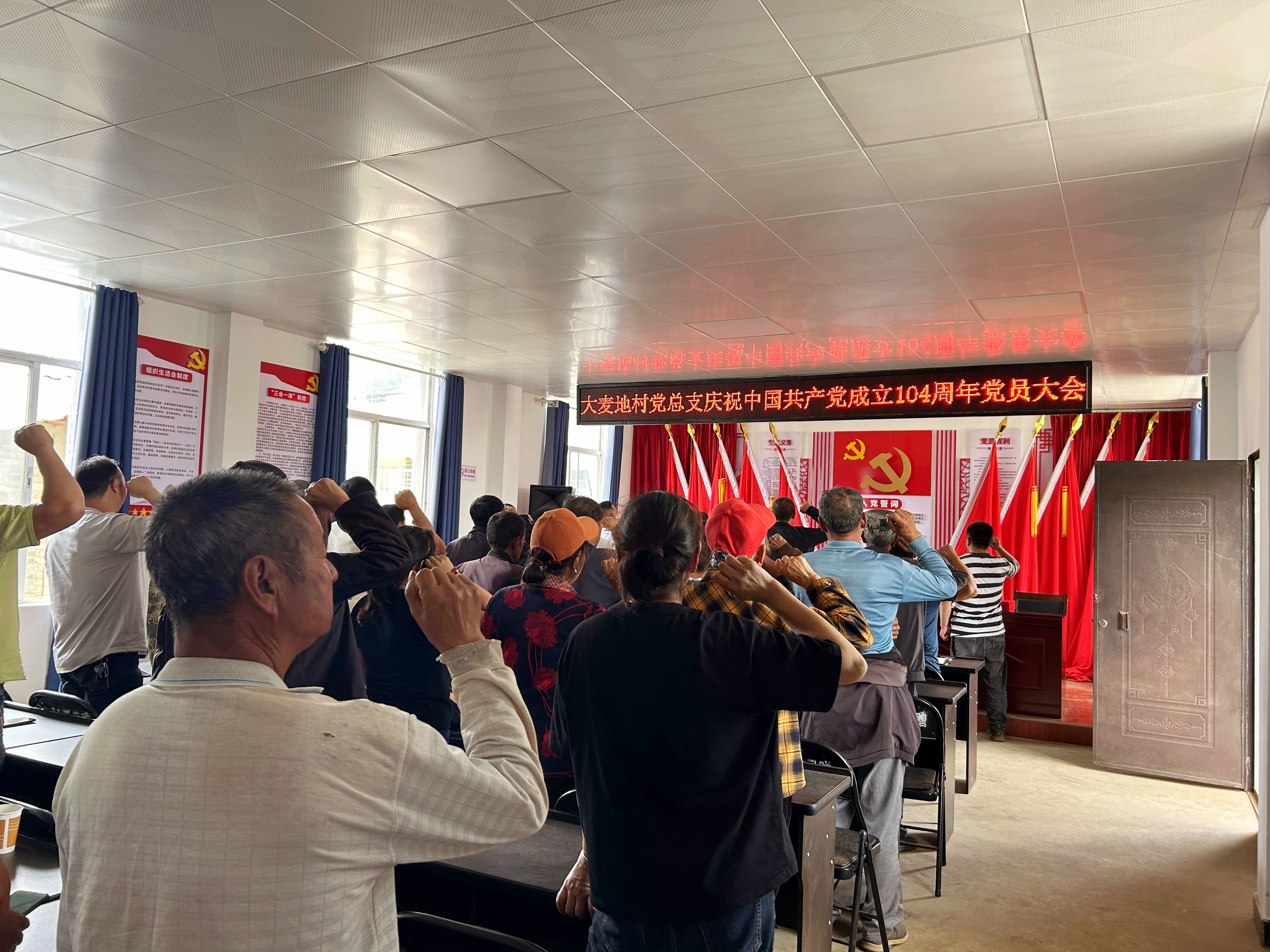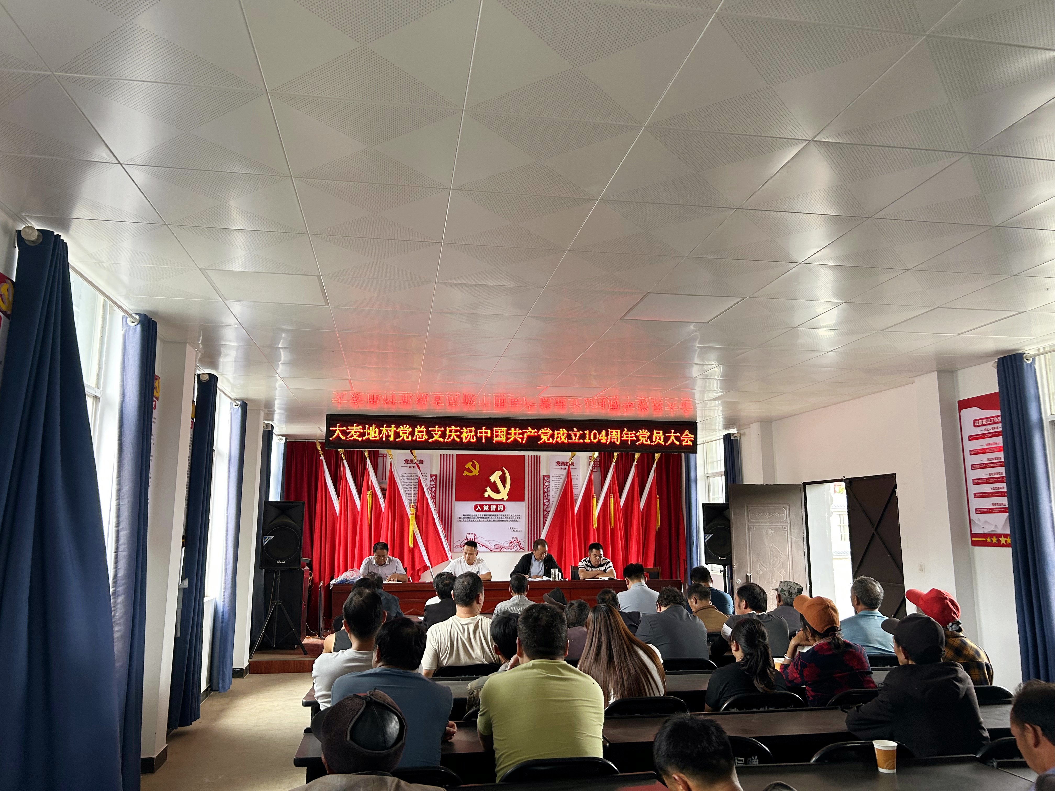 为庆祝中国共产党成立104周年,回顾党的光辉历程,弘扬党的优良传统,2025年6月27日,大麦地村党总支组织召开庆祝中国共产党成立104周年表彰大会,全体党员齐聚一堂,共庆党的生日。