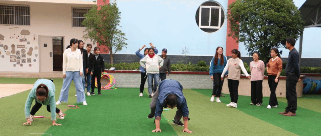 随后,培训教师们在高桥镇中小幼儿园骨干教师的指导下,培训了一些精彩的户外游戏,并一同参观了幼儿园教师亲手做的文化长廊和幼儿种植区。
