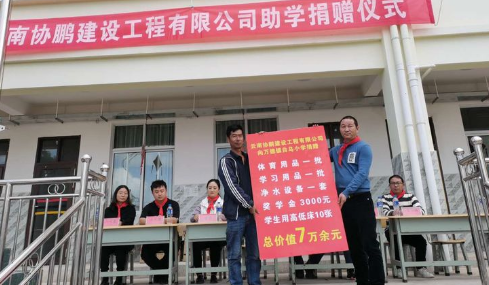 本次云南协鹏建设工程有限公司向万德镇自乌小学的师生们捐赠文具用品、体育用品、高低床、净水设备、优秀学生奖学金等价值共计7万余元。
