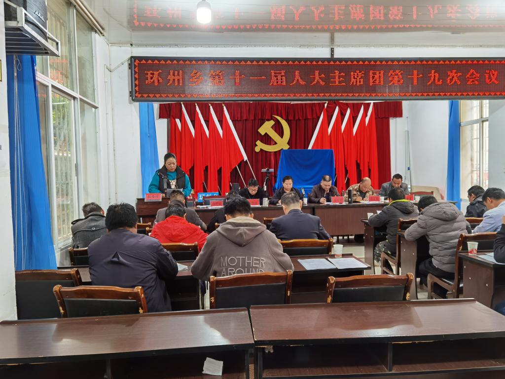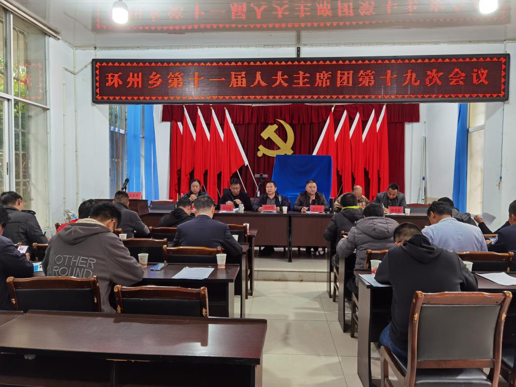 2020年11月3日上午,环州乡第十一届人大主席团第十九次会议胜利召开,会议审议通过了《环州乡人民政府关于食品安全工作情况的报告》和《环州乡人民政府关于义务教育工作情况的报告》。