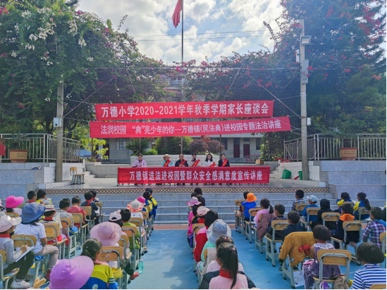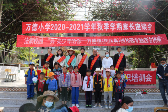 为贯彻落实习近平总书记关于“把《中华人民共和国民法典》纳入国民教育体系,加强对青少年《中华人民共和国民法典》教育”的重要讲话精神,进一步增强青少年的法律意识。11月13日,万德镇普法小分队到万德小学为600余名师生和家长上了一堂题为《法润校园,‘典’亮少年的你》的法治课,万德小学法治副校长尹丽给在场同学带来了一场“专属”孩子们的《中华人民共和国民法典》法治课。