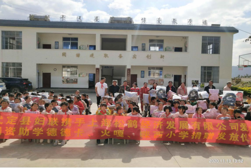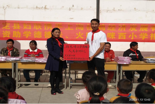 11月13日,武定县妇联携手上海嘉定区安亭镇松鹤经济发展有限公司到田心乡部分小学举行物资捐赠活动,县妇联党组书记、常务副主席覃文,县妇联党组成员、副主席杨云秀及县妇联派驻德德卡第一书记徐丽萍,德德卡村委会书记张美,田心乡专职副主席李杰萍,田心相关小学校长、德德卡小学师生共100余人参加活动。