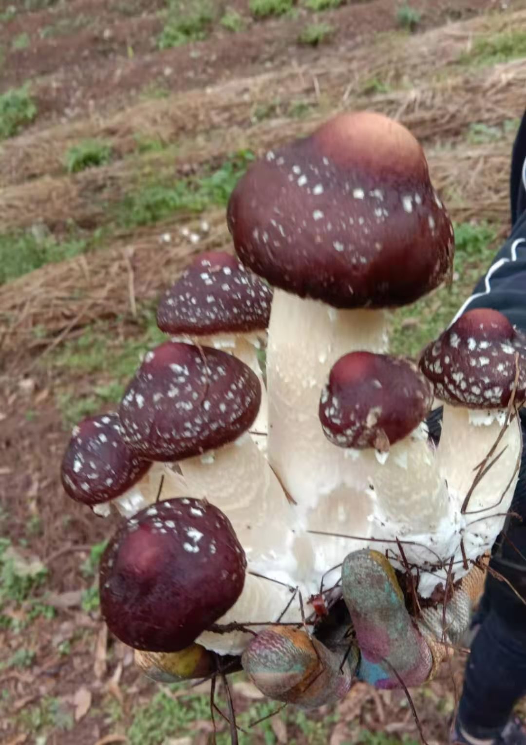一壑壑的菌地墒整齐排列,一篮篮新鲜的赤松茸鲜嫩欲滴,到处是忙碌的身影。这是武定县环州乡五谷箐村李兴友赤松茸种植基地上当前的一个画面。