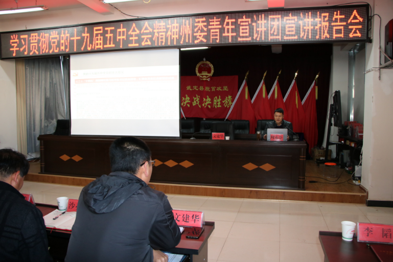 根据楚雄彝族自治州委统一安排,12月9日,党的十九届五中全会精神楚雄州青年宣讲团到武定县发窝乡开展党的十六届五中全会精神宣讲活动,楚雄州青年宣讲团成员、共青团楚雄州委副书记周永许为发窝乡干部群众及青年群体宣讲党的十九届五中全会精神。