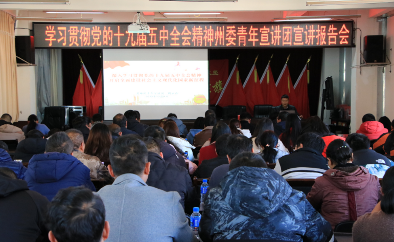 周永许首先介绍了党的十九届五中全会召开的背景及重大意义,从决胜全面建成小康社会取得决定性成就、准确把握二〇三五年远景目标和“十四五”发展目标、“十四五”时期经济社会发展重点任务、坚持党的全面领导,动员各方面力量团结奋斗、新时代中国青年的责任与担当五个方面详细讲述党的十九届五中全会精神。深入分析全面建成小康社会取得的突出成就,深刻认识当前和今后一个时期我国发展面临的形势;深刻理解“十四五”规划和二〇三五年远景目标;深刻领会全会提出的一系列新的重要思想、重要论断、重大举措;深入解读了党的十九届五中全会和习近平总书记重要讲话的精神实质、丰富内涵和实践要求。